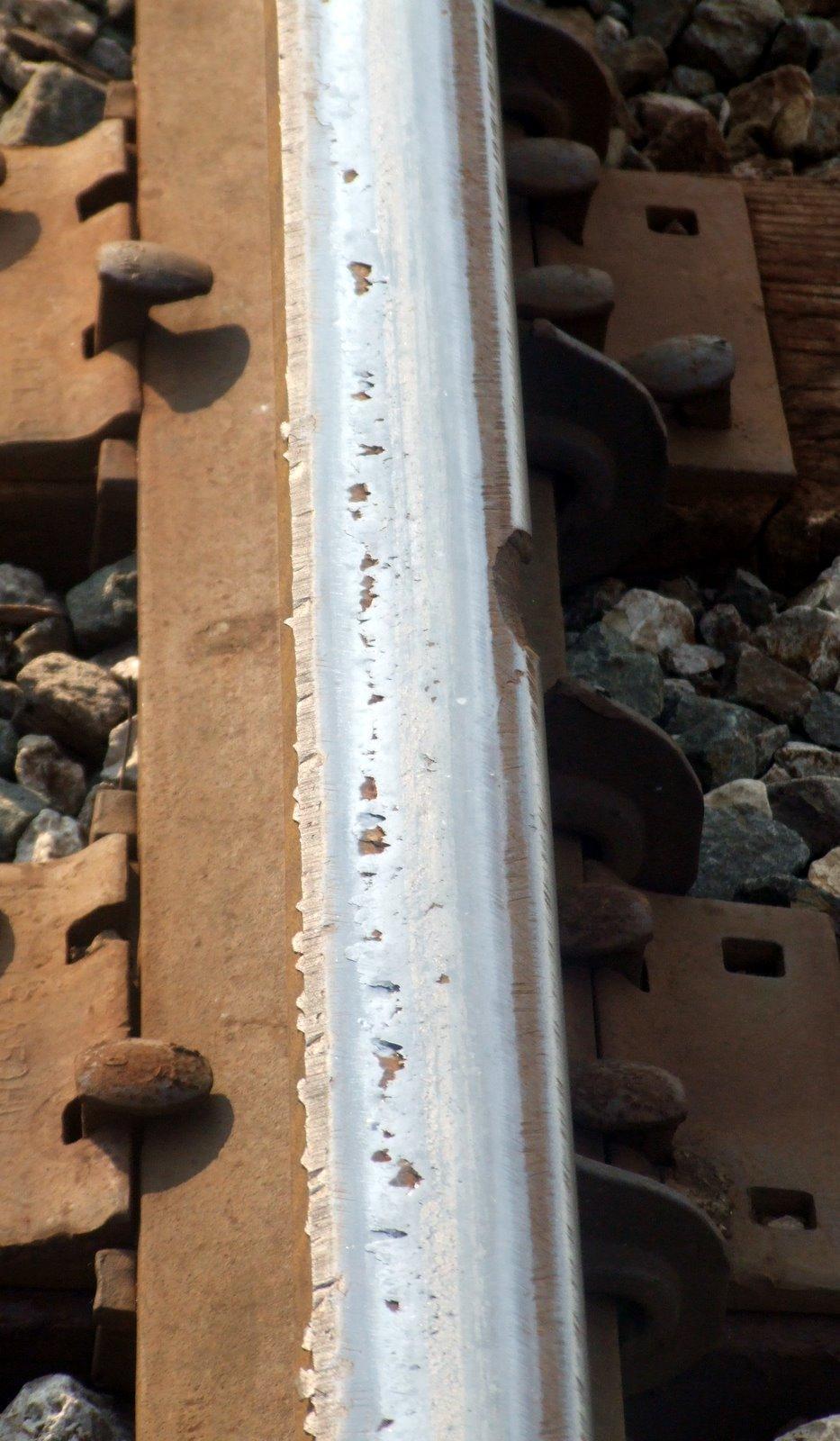 The rails are cracked and scarred. Bits had broken away. It can't be dangerous or the trains would no longer run. But it can't be the way to run a railroad, can it?