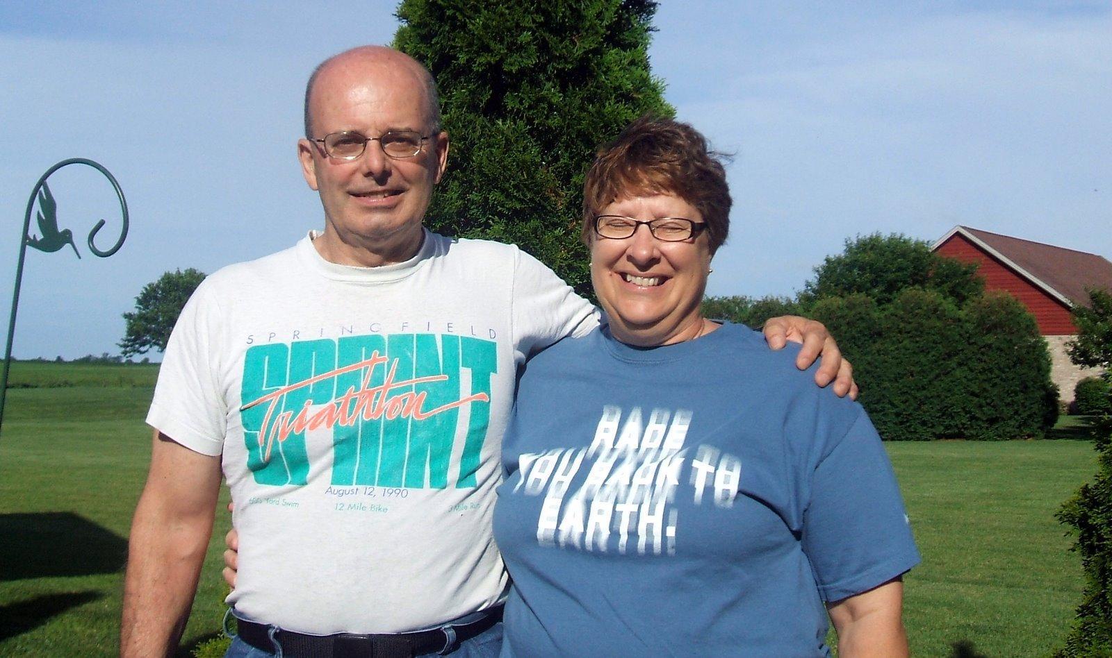 He and his wife Kathy live four miles south of Ashkum. They share their house with four boisterous and agile dogs, three of which Kathy trains for agility competitions. The fourth is too old. In the backyard was an obstacle course of white hurdles with blue and red stripes.