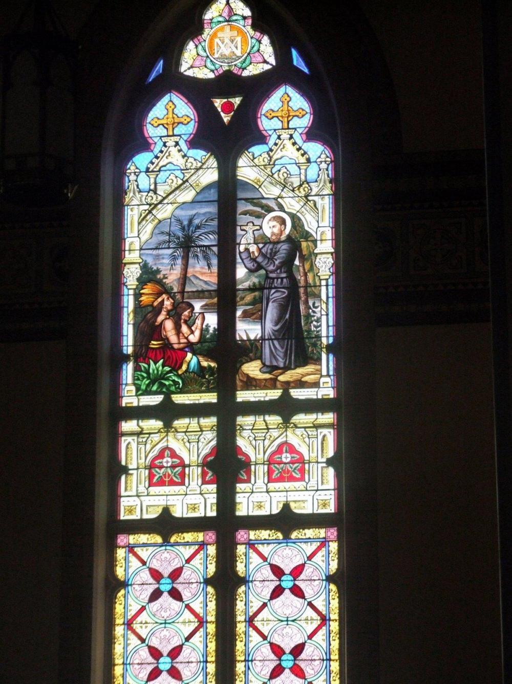 NOVELTY OF THE DAY: There is an imposing basilica in Dyersville, a large Roman Catholic church. It has stained windows. One of them portrays missionaries preaching to the Indians. Sadly, folk realised too late that the artist had misunderstood: it should have been Indians from India and not Red Indians in feathers.