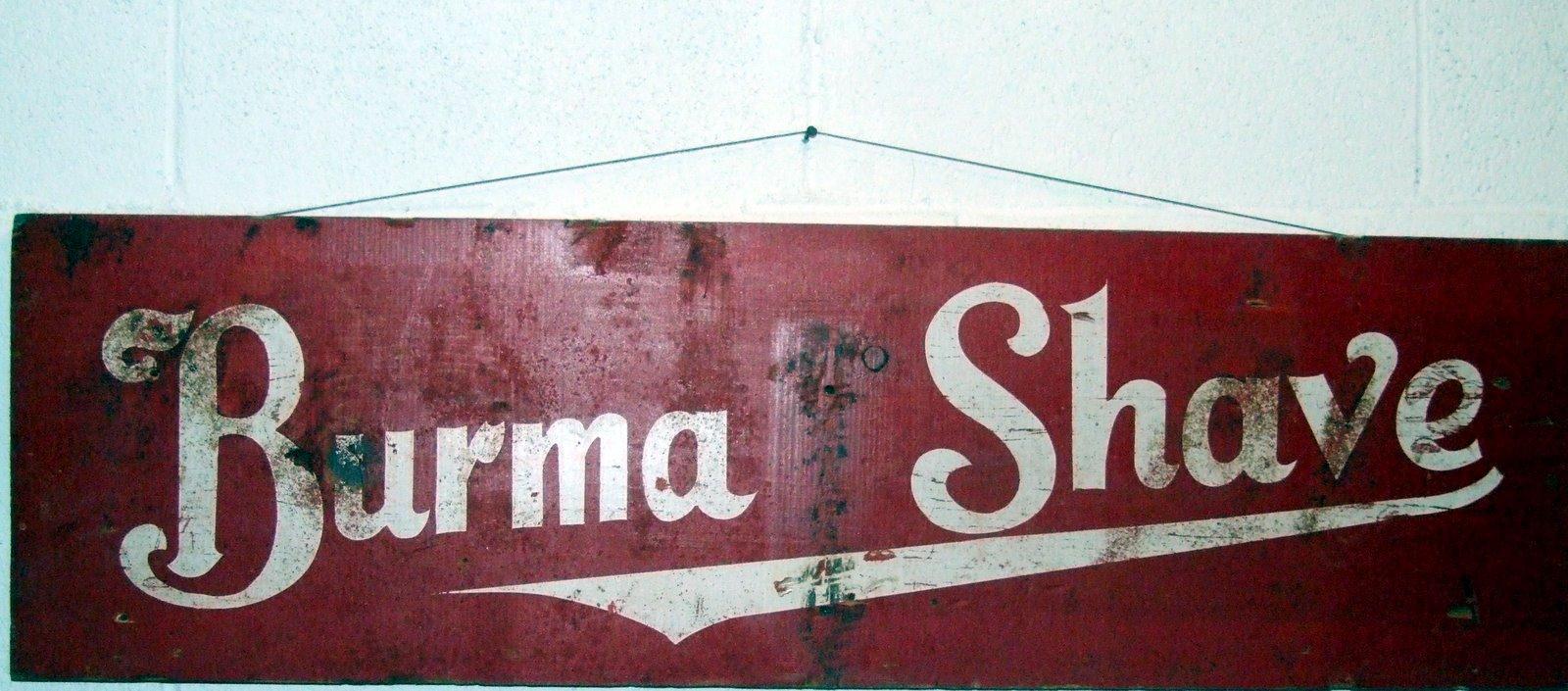 Early in the 20th century two brothers called O'Dell started the Burma-Shave company in the Bryn Mawr district of Minneapolis. Having neither money nor sales, they hit on the idea in 1925 of spending their Mondays, Tuesdays and Wednesdays on the road, staking advertisements on the verge. On Thursday and Friday they stopped off at shops and garages along their chosen road and asked how many orders they'd had.