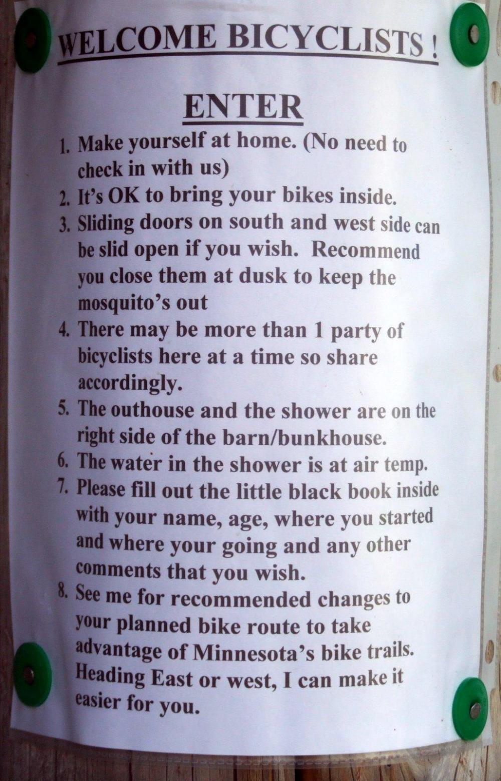 The bunkhouse hasn't long been open and I sense Donn would stand by the road to waylay cyclists who dare to pass without spending the night. Donn remembers everyone who's been. There's no need to book, nor even to clock in at the house. "Just turn up and make yourself at home, that's the rule."