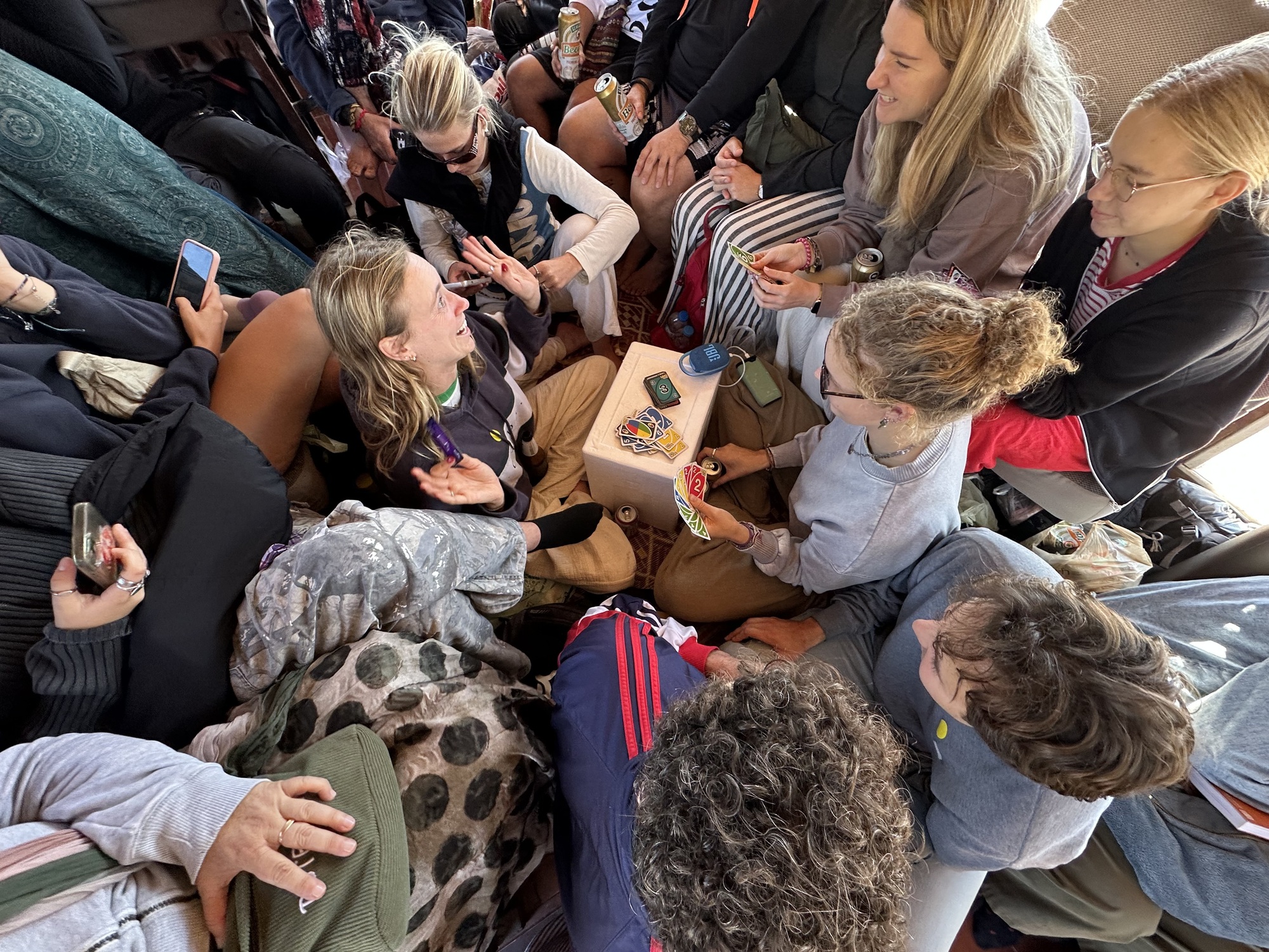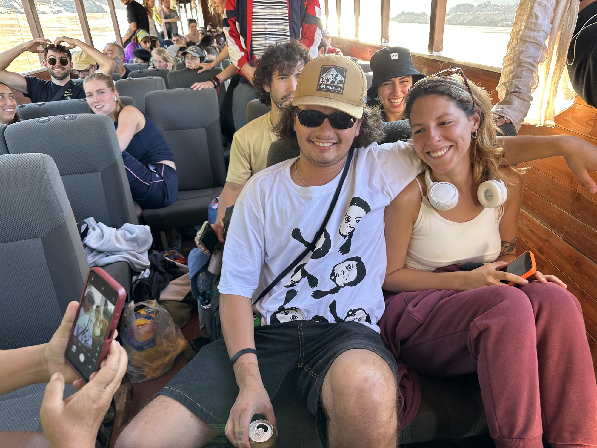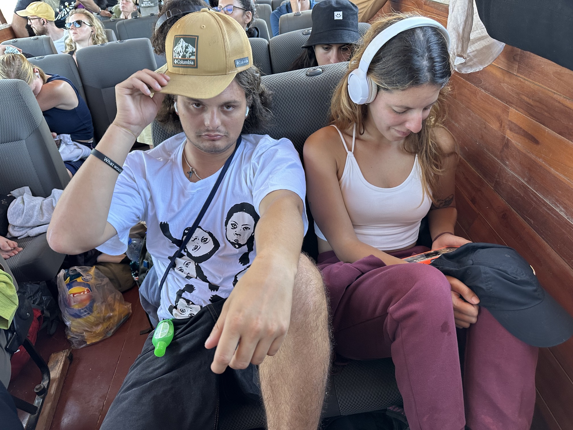So, the young backpackers occasionally came over to sit on the edge of the boat behind us with their bodies in the sun. They were basically hanging outside the boat and would occasionally be told to get back inside. They came over to the side of the boat to smoke cigarettes and drink beer and we started talking with them. They were quite interesting and interested in us and our story especially when we told them that our trip was a bike trip. They even wanted to know how Andrea and I met and they loved that story. I asked them all sorts of questions about themselves and their trip. I get energized from young people and it was really fun. They were actually interested in us, which, as we get older, is more and more rare. But that is the beauty of being trapped on a boat for two days. I feel we got to know them and I thought they were really nice people, every one of them. I felt sorry for the German couple as well as most of the passengers because they didn't have the experience we were having. It's important to rub shoulders with the younger generation and important for them to rub shoulders with an older generation. I felt they understood that quite well. I was super happy the group hadn't been able to be in the back of the boat and was put up in front of us.