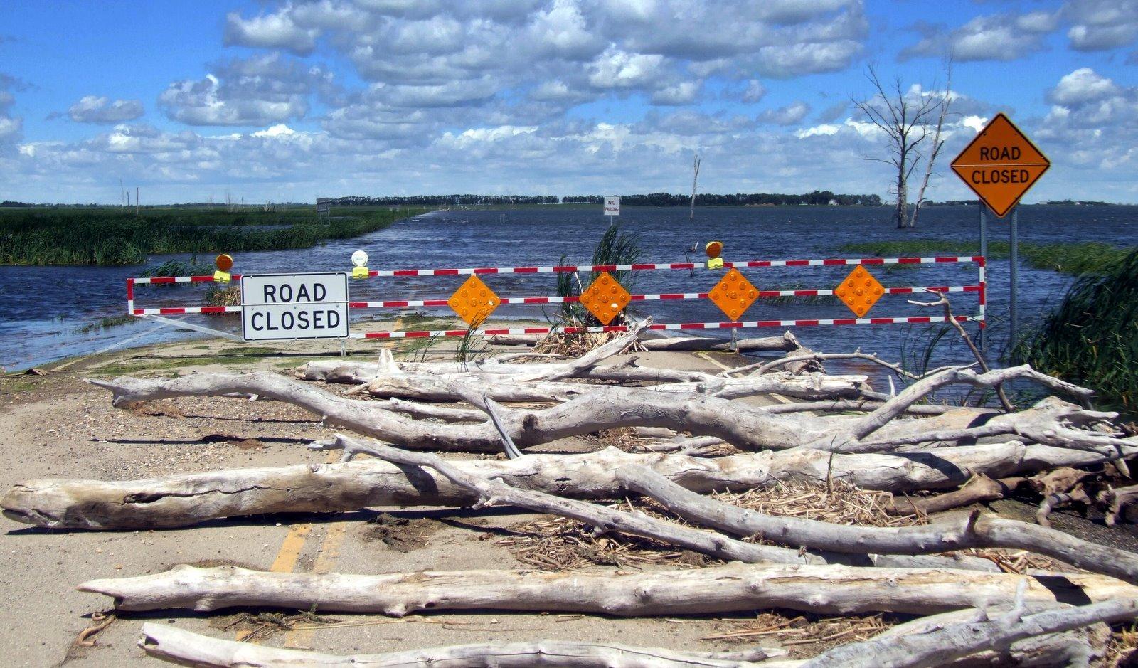 We are camping tonight in the park at Minnewaukan, a doomed town that will be under water in a few years. The village holds on but buildings lie empty and there is an air of dignified decay. The lake behind the