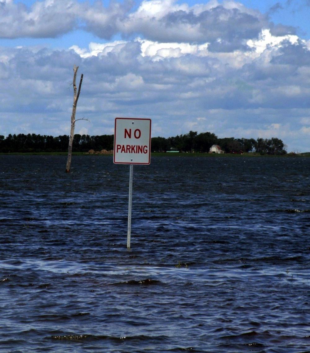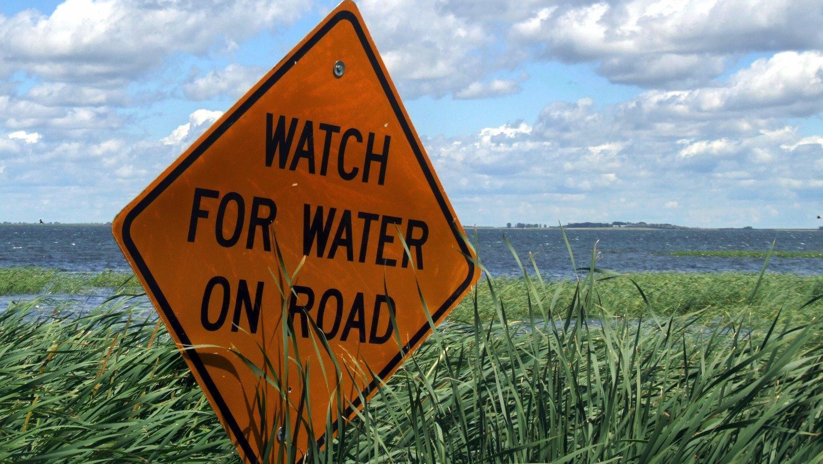 place used to be 12 miles away and only two feet deep. Now it laps at the edge of houses. Water flows in but there is no way out.