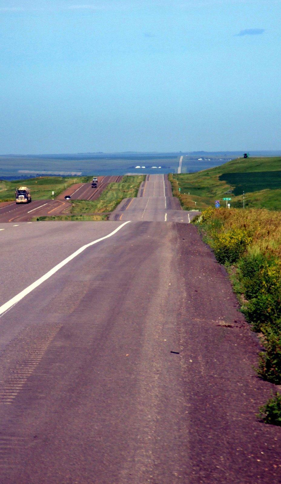 Frankly, this was another day of no great note. We have stayed on US2 because the road to the south, which our maps suggest, is now so full of oil trucks reputed to have the state's most aggressive drivers. The shoulder on US2 has been generally good, often broad and smooth, although for the last half an hour we switched to the other carriageway when our own side dwindled to nothing.