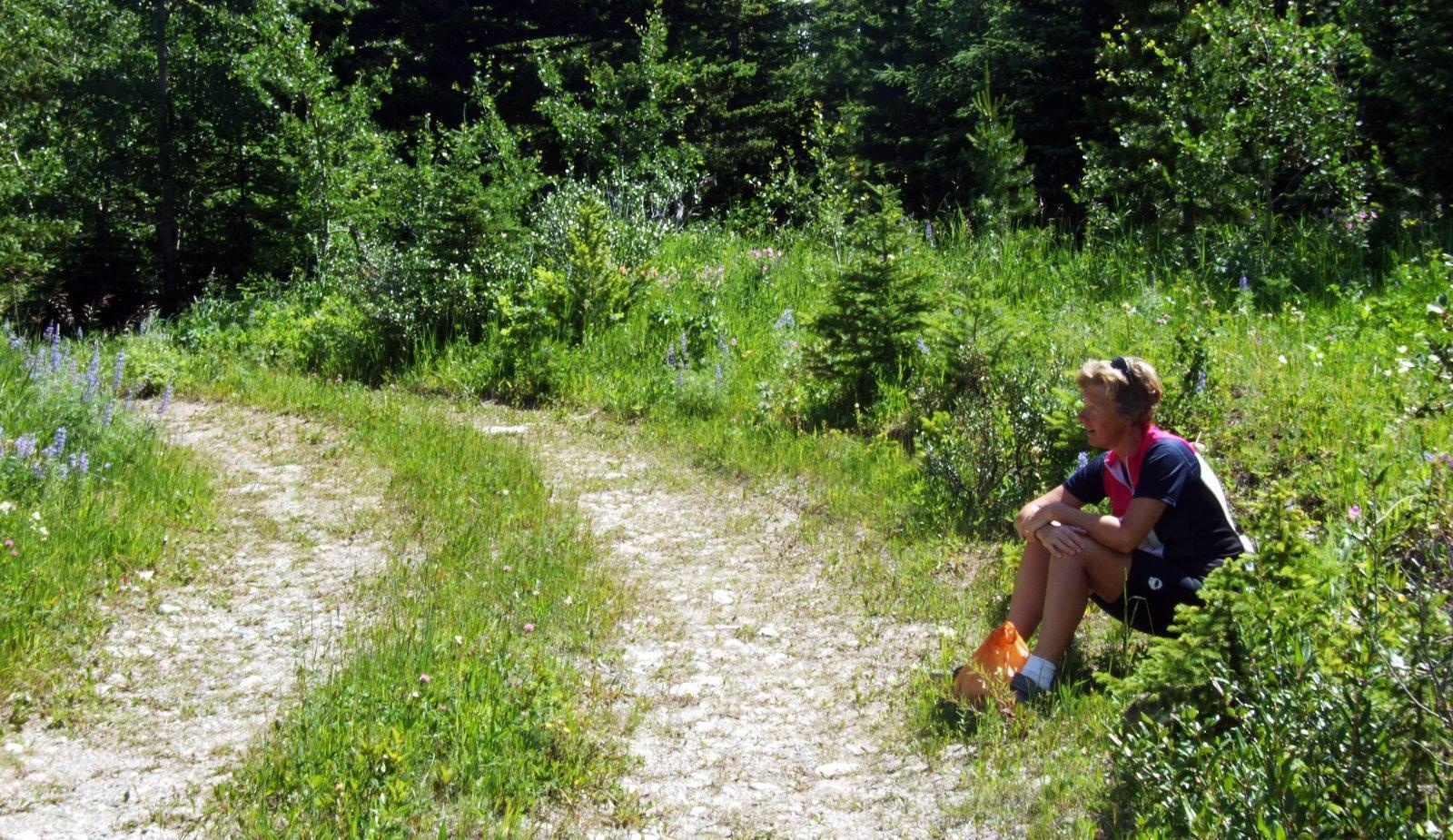 We pulled into a primitive state camp site beside the Belly river. There was no running water to drink and there were no showers. But there was a storm cabin and there we spent the night, indoors, secure against the bears which regularly roam the site, and sleeping on tables.
