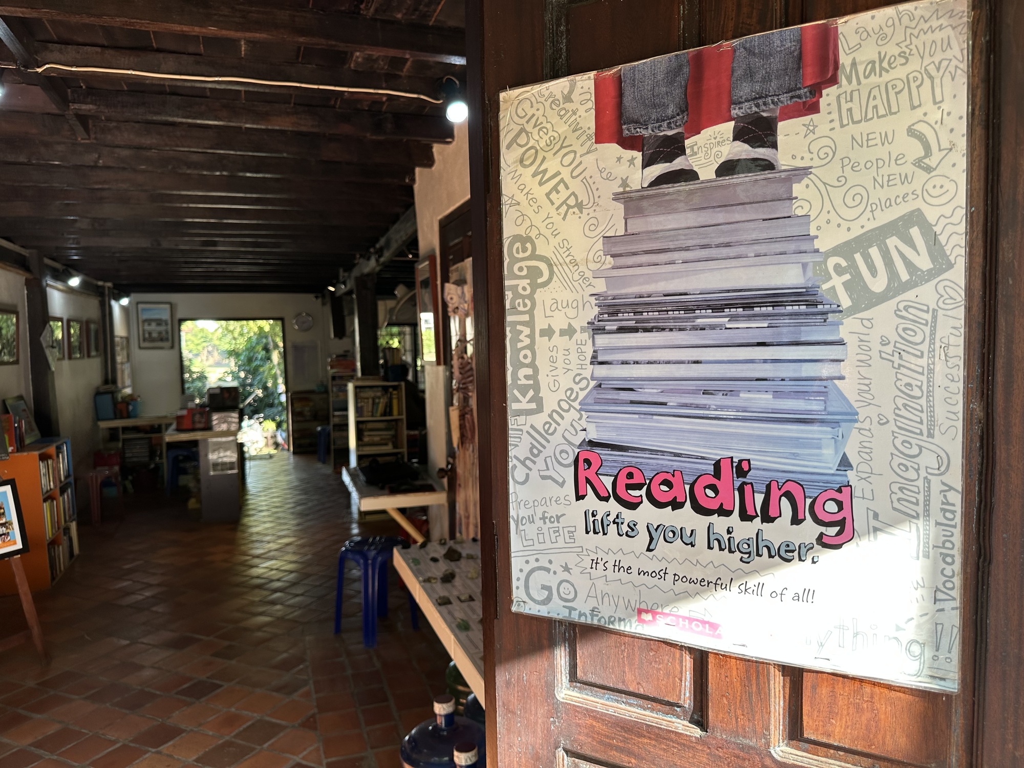 20 years ago we were selling Lao silk textiles in the states and sending the proceeds to two very worthy literacy projects in Luang Prabang. Since we were in the neighborhood we stopped in at @MyLibrary, started by our friend Carol and now powered by the locals that grew up under her tutelage. It’s a marvelous place of learning and discovery, with English classes, books on every topic, scientific exhibits, and a thriving film and photography curriculum. Carol wasn’t there and in fact was returning to the states the next day, so we missed her but have such tremendous respect for what she has accomplished there. I messaged her and we had a short text conversation. I feel like we could sit with her for days discussing all the changes in Laos, good and bad.