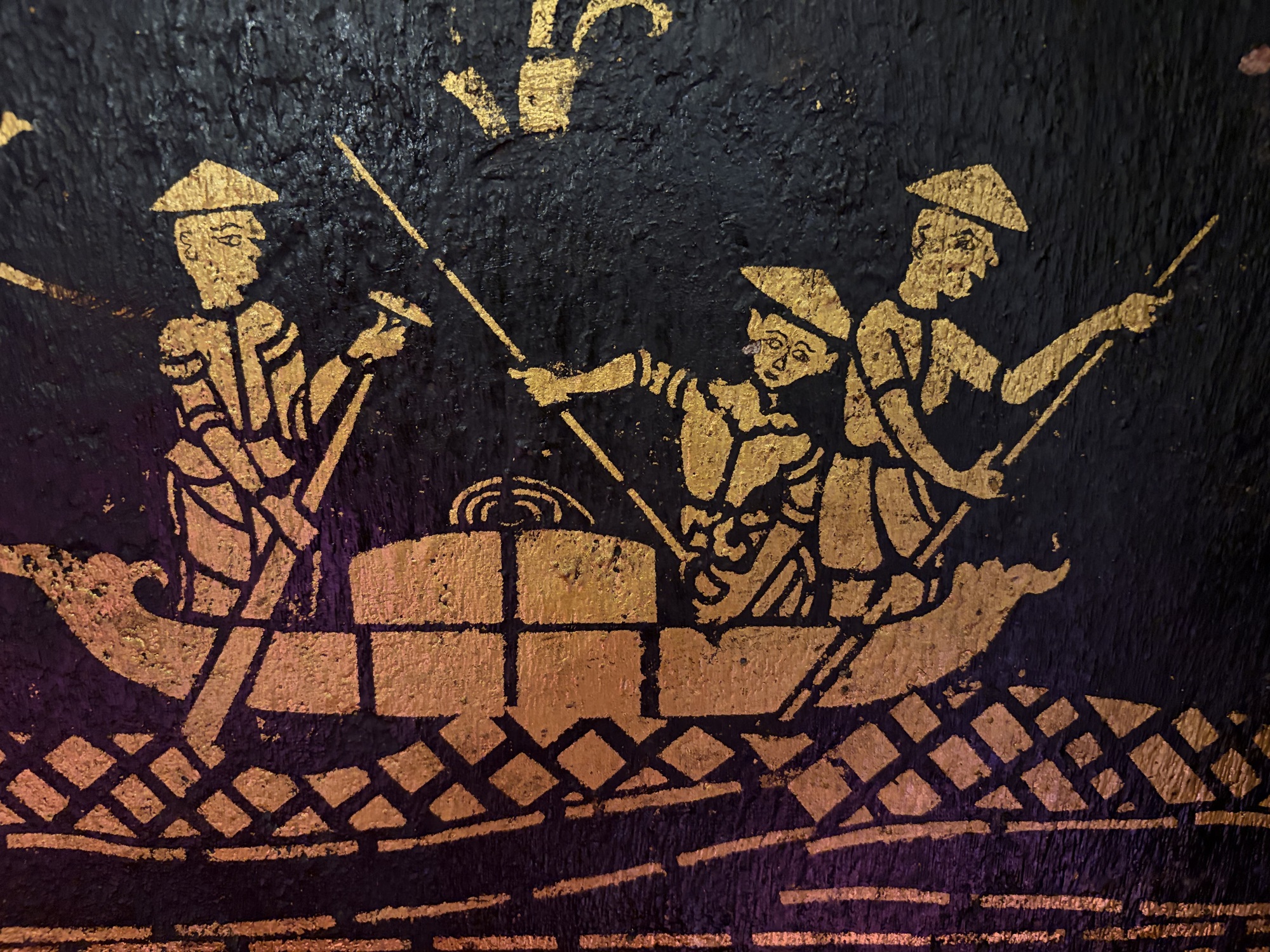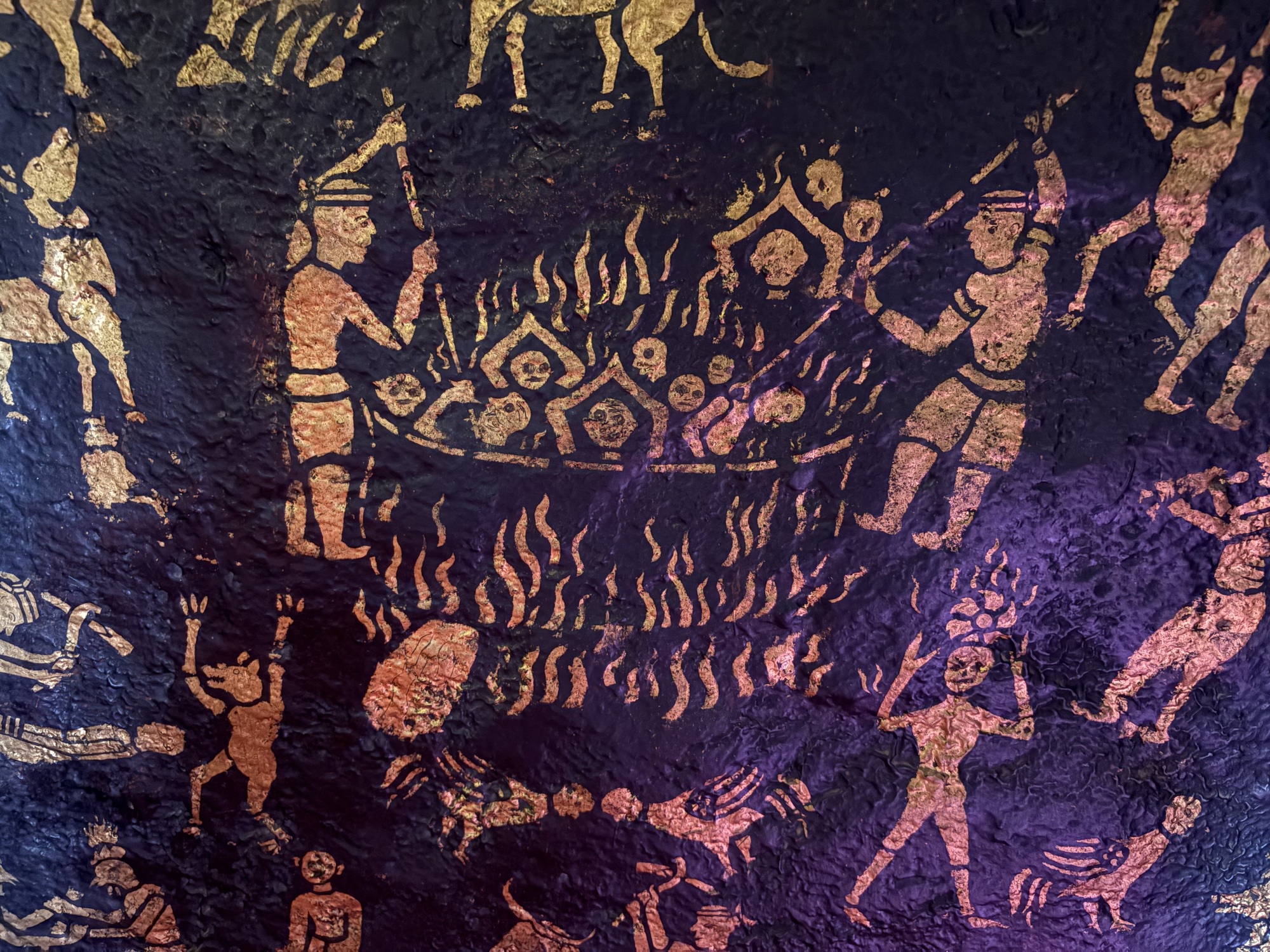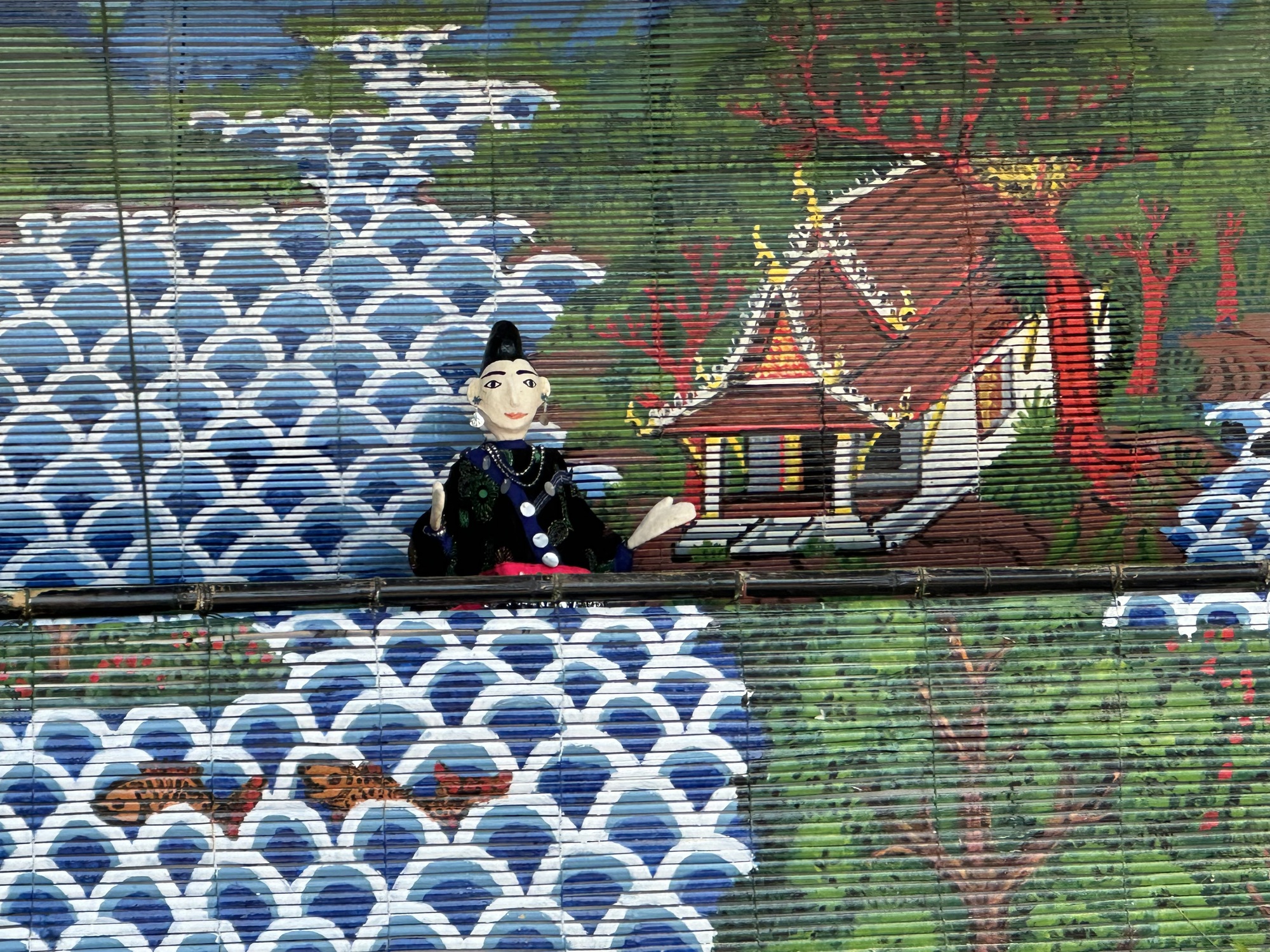 Most of the tourists only seemed interested in posing in the windows of the mirror tile temple. They didn’t even glance at the murals, which show brilliant little scenes of Lao village life, animals, fish ponds, people plowing and dancing and weaving, the entire scene so vivid and luminous and absolutely delightful. But, you know, selfies are important to a lot of people.