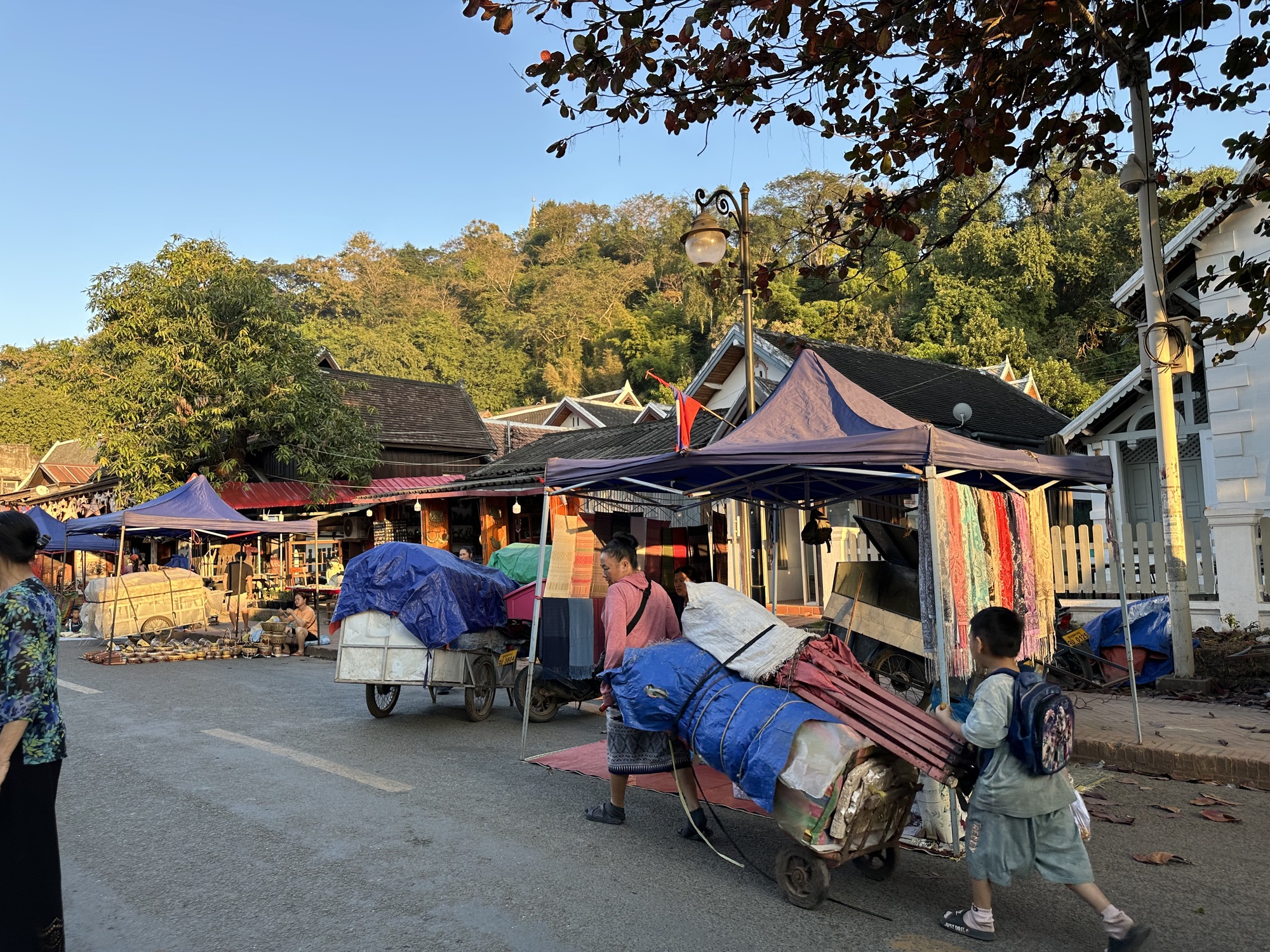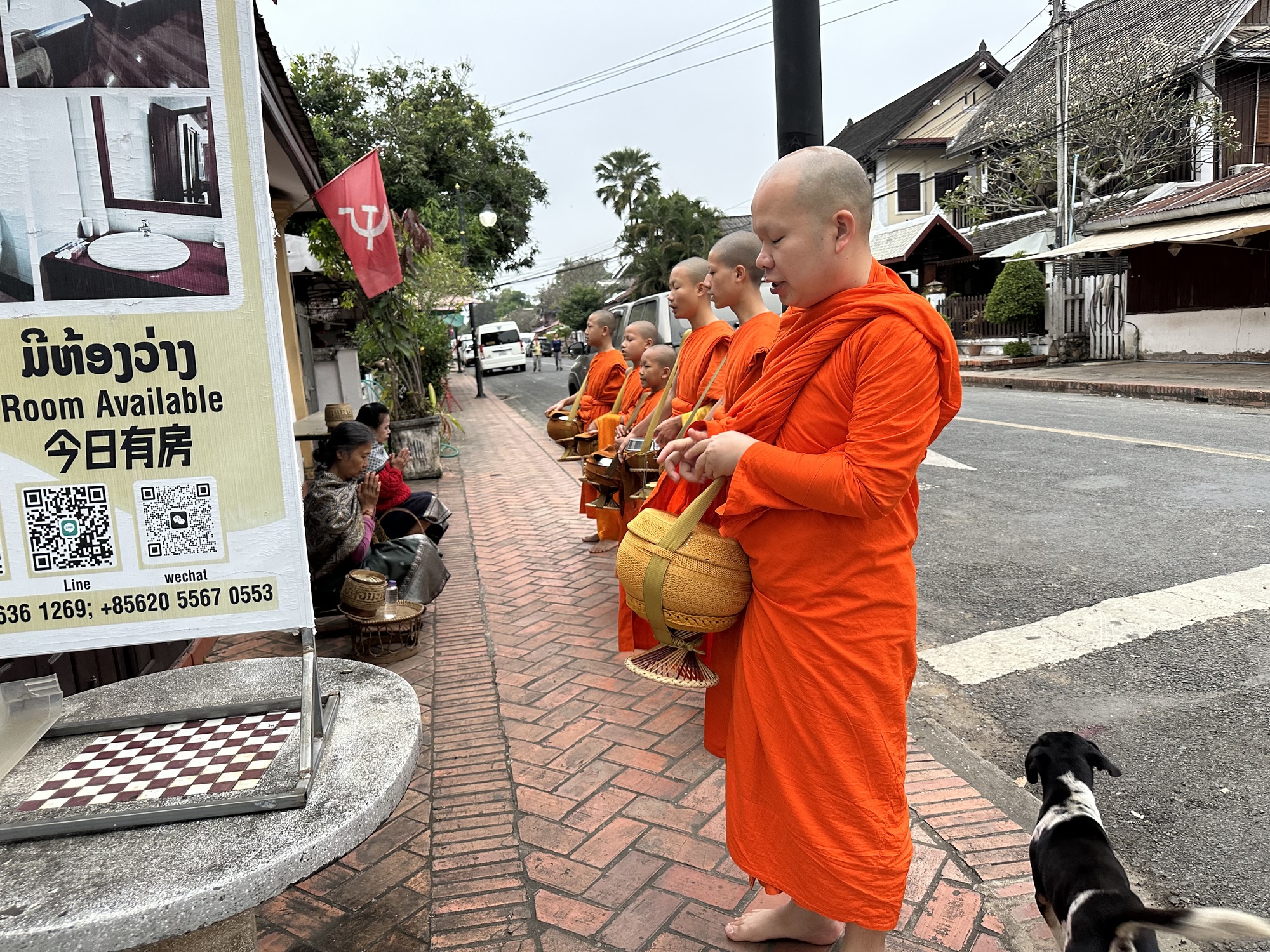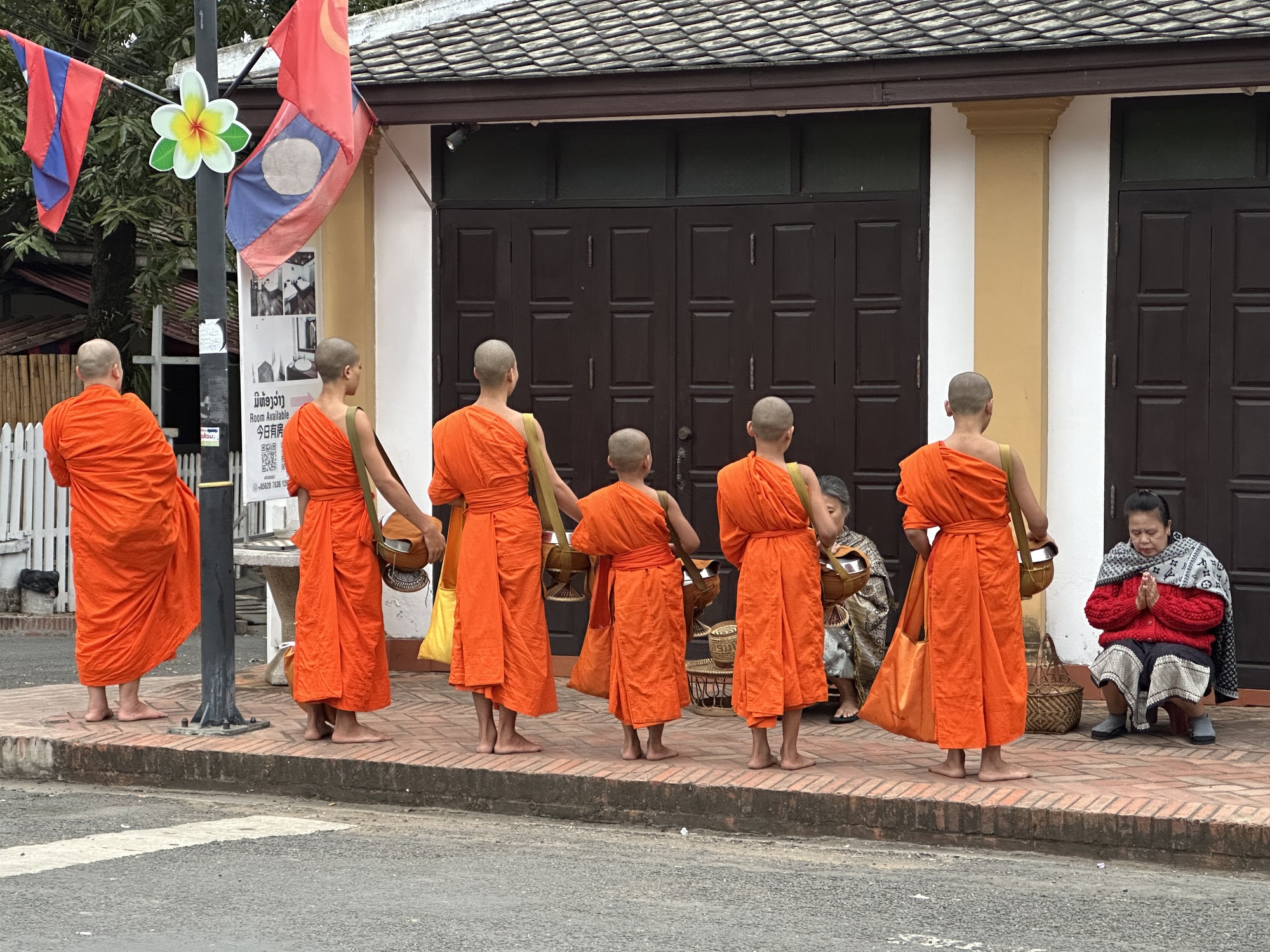 So, let’s assume that 95% of these vans are full of Chinese tourists and that they are staying in Chinese-owned hotels at the outskirts of Luang Prabang and were awakened at 4 am by their tour operators, loaded into vans, and scooted onto the main part of LP to see the almsgiving that was most certainly put into their tour itineraries. I honestly can’t even imagine what the scene is up there a few blocks away. So I lay back down and went back to sleep until a decent hour.