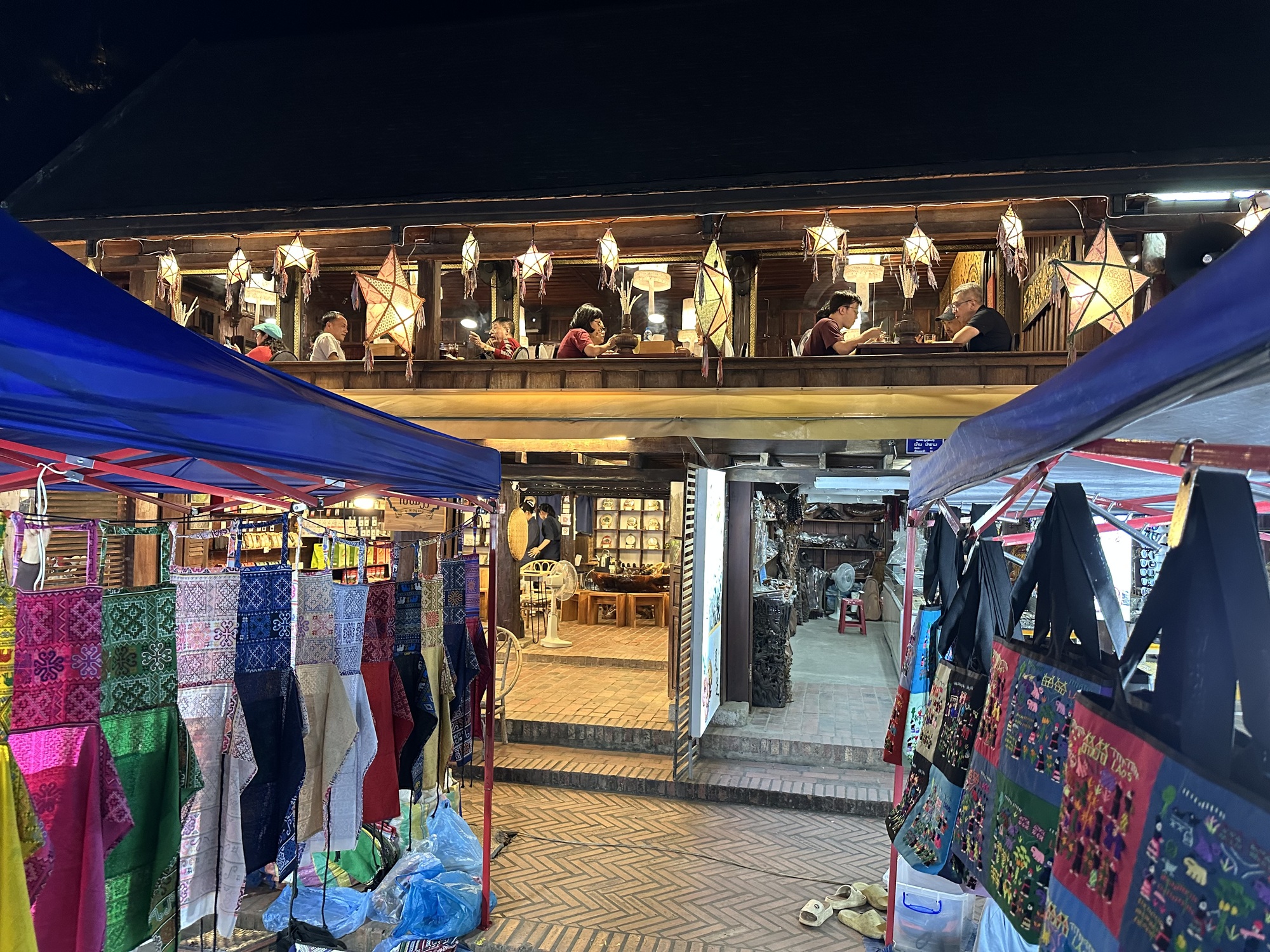 We took a perfunctory stroll through the night market. We used to buy silk there, believe it or not, but most of the pieces are now machine made and not made of silk, or if they are genuine, they are shopworn from getting packed and unpacked and hung every single night of the year until they are sold. It’s a fun market though, and worth a peek.