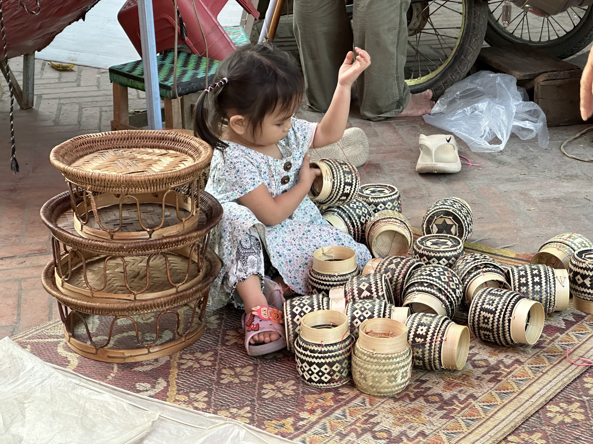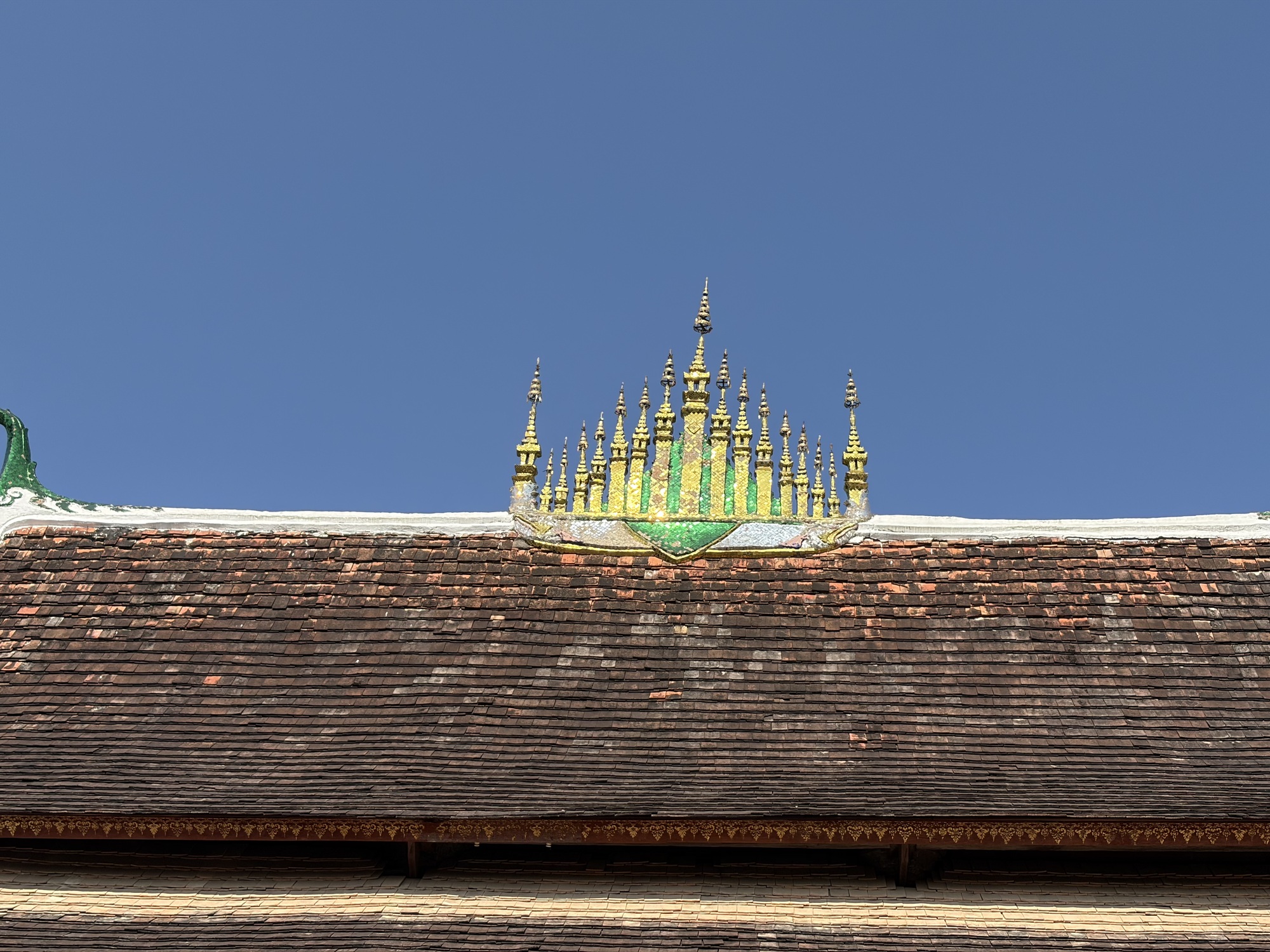 While Bruce photographed, I sat on a bench and observed and thought about non-attachment. I’m so lucky to have been able to walk through Wat Xieng Thong in near solitude. These folks will never have that. But they’re enjoying themselves.