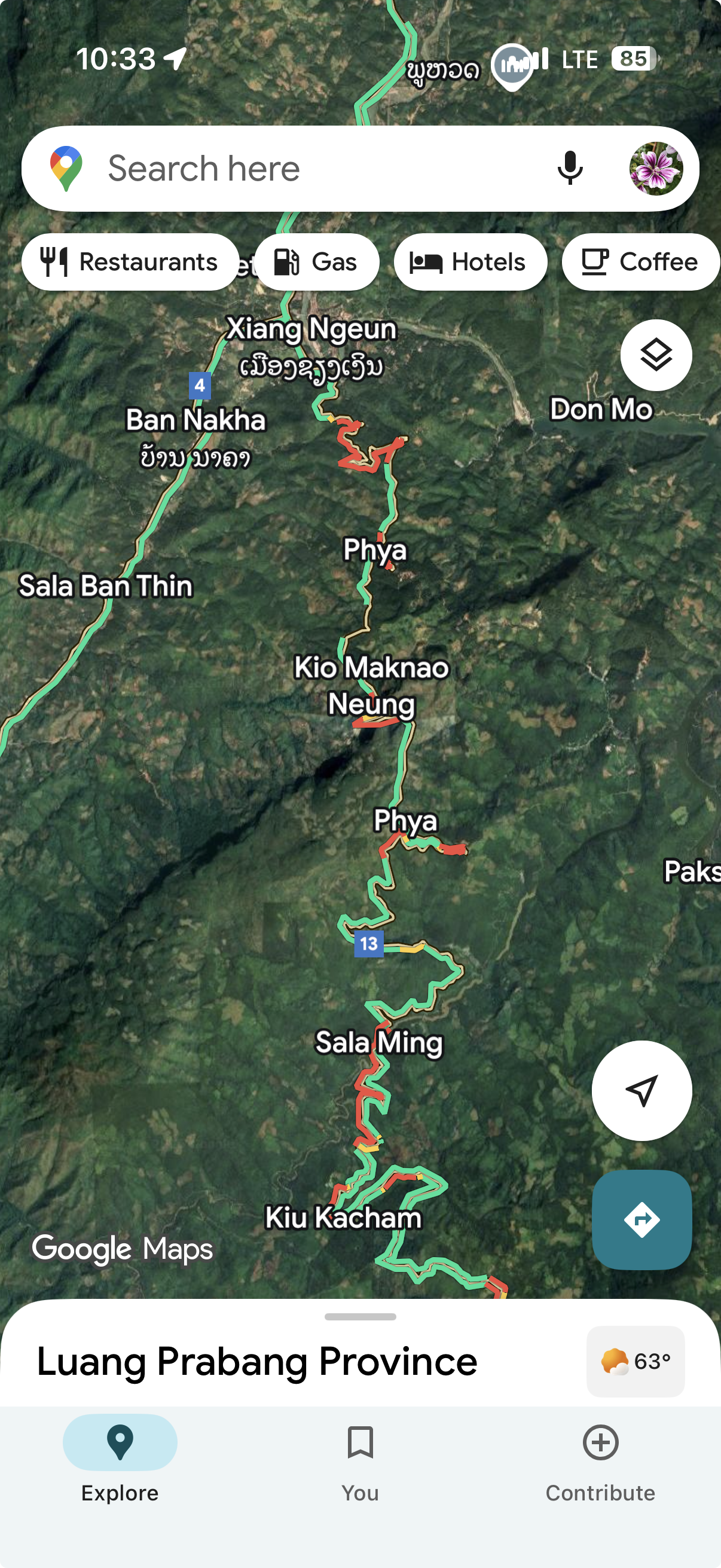 Anyway. The roads in Laos have gone to shit. They have far more heavy truck traffic than they can bear, there were catastrophic floods and landslides this summer which may or may not have been repaired. Looking at Google Maps, the curves of Highway 13 are bright red, indicating spots where the trucks jockey for position, line up waiting their turn, hanging off the edge of a thousand foot cliff. Nope.