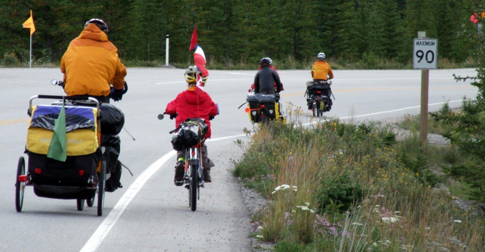 "Perhaps they've been asked everything so many times," Steph suggested, remembering how we had from time to time had to explain what we were doing, how many tyres we'd used. Personally, I thought the clue lay in the balaclava that Jean-Roch was wearing. To travel at the speed of a six-year-old, and to ride the short distances that he could cover, would mean never being properly warm on the bike and having to spend many cold hours on a campsite after it. They had camped across the road from where the hostel and we chose the hostel because it was close to freezing. If they had come to Jasper in August, not unreasonably expecting sunshine and a happy start to their périple, then they had every right to be disgruntled.