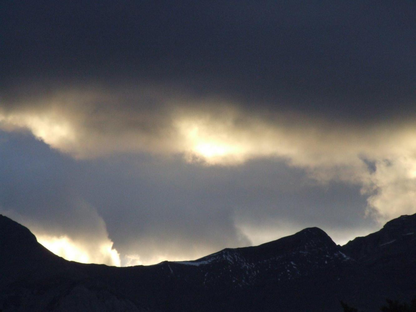 Yesterday we dropped from Sunwapta into the top of a cloud, rode straight through it in thick, miserable drizzle, then out the bottom. When we told the story later, someone remarked that in a car you'd do no more than turn on the lights and the windscreen wipers. It wouldn't occur that you were passing through a cloud. On a bike, on the other hand, it is face-tighteningly obvious.