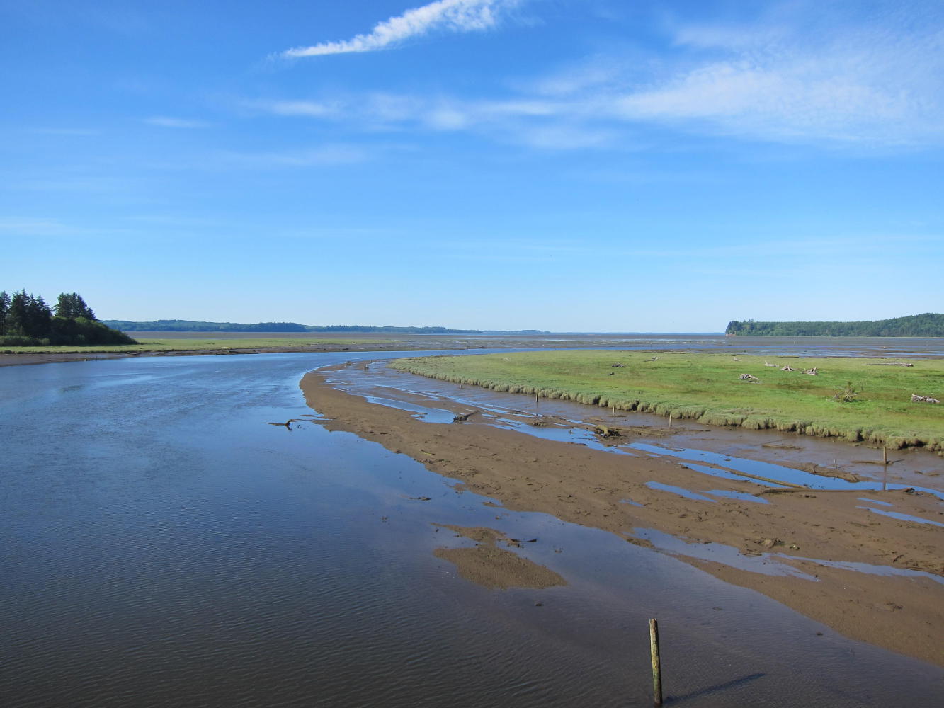 Then it was a leisurely and cool ride along the north shore of Willapa Bay. It is one of the reasons I chose this route and well worth it. Almost no traffic and majestic views. This morning the tide was out. I had wished for it to be high tide, but I’m not so sure any more. The low tide landscape was fascinating.