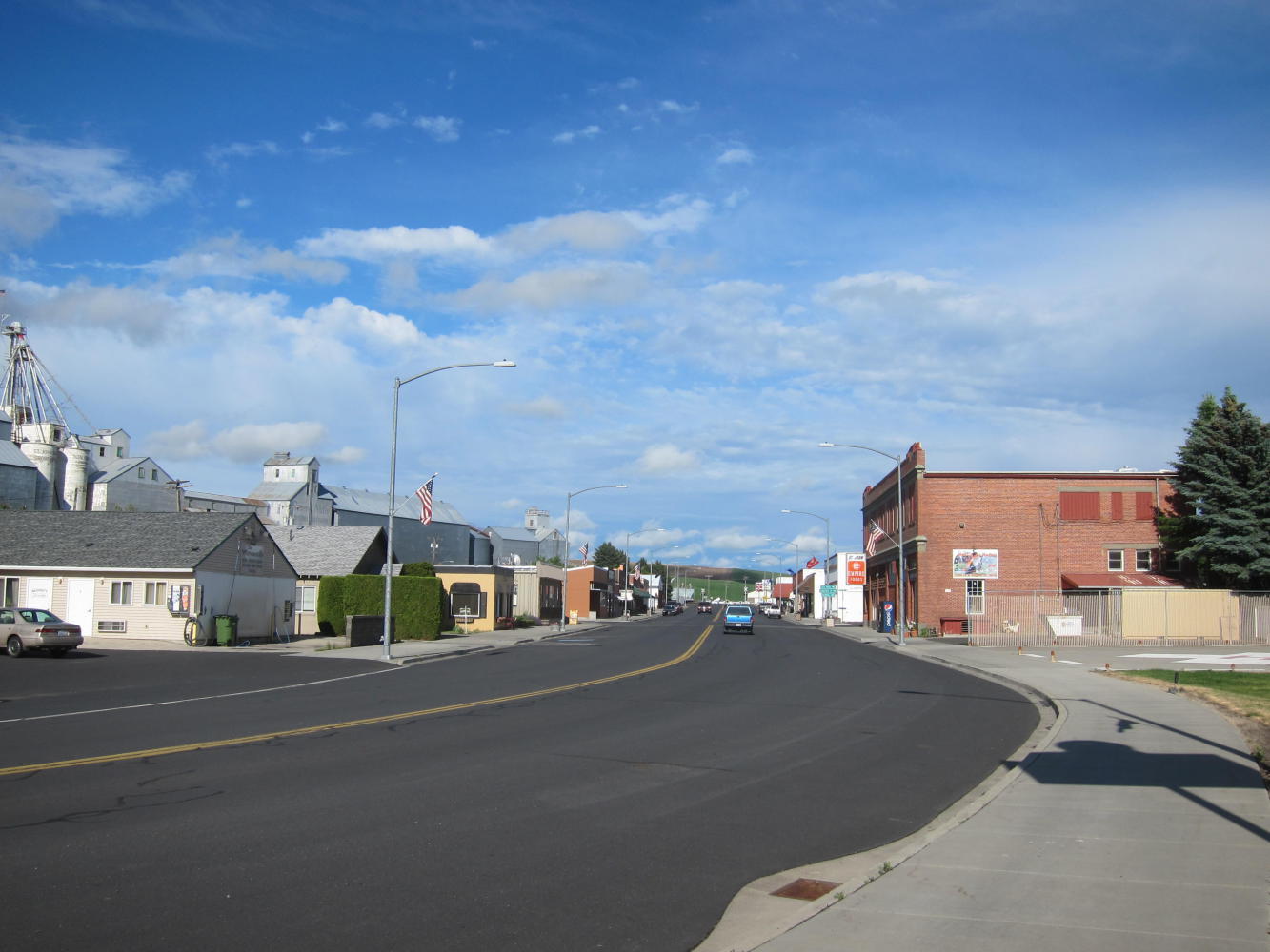 I zoomed down the hill into St. John at 5:30, but I was at least a half hour too late for most things - maybe an hour. St. John is a farming town and everything opens and closes early. 6:00 is almost like midnight in the big town. I did find a little cafe open and had a quick dinner. Then I went out to the fairgrounds and set up my tent in the sunshine to dry, laid out a few things on the cement, and was asleep before the sun was down.