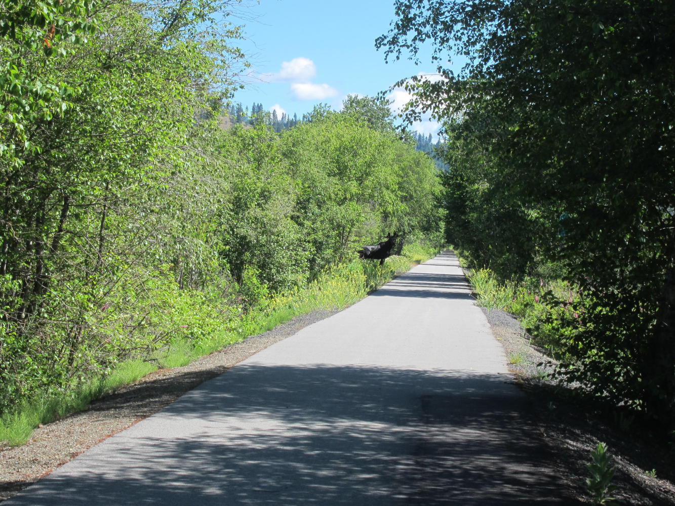 Just before I was planning to take a break, I saw a moose out on the trail. I stopped as quietly as I could, but she still knew I was there. After a few minutes, she turned tail and ran back into the brush.