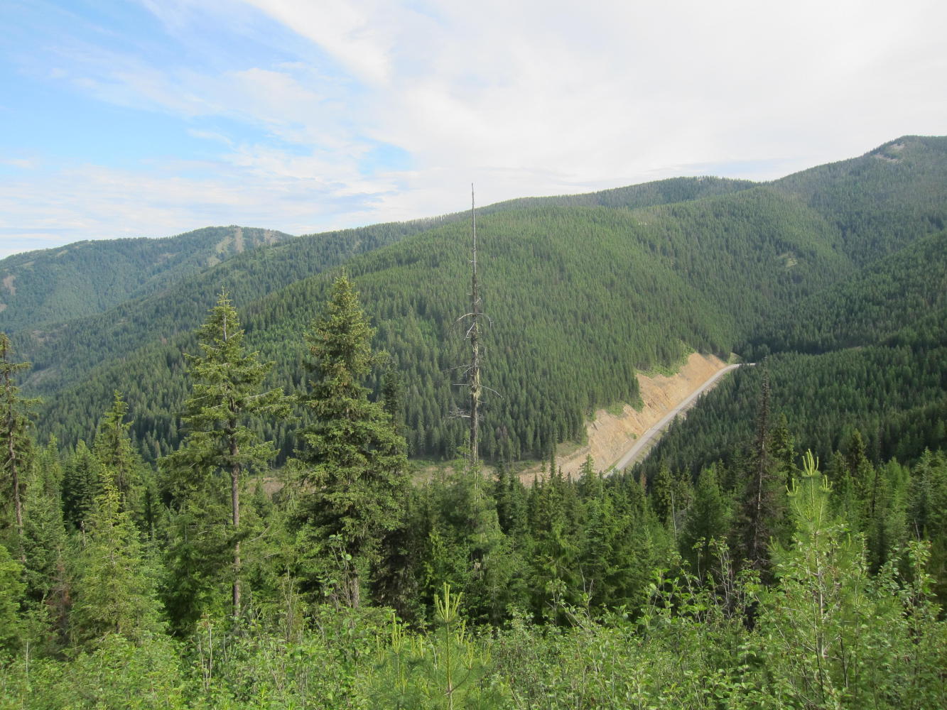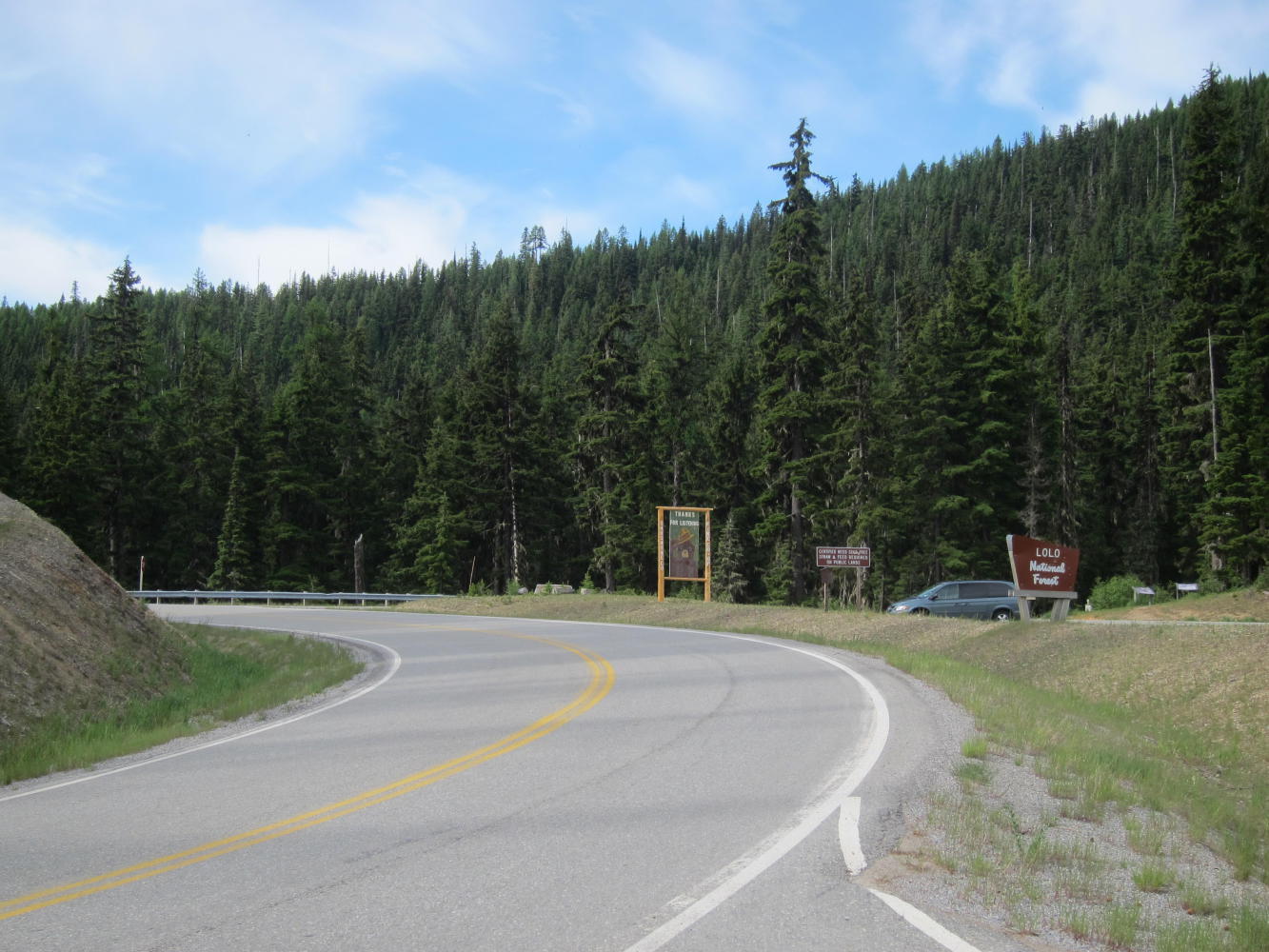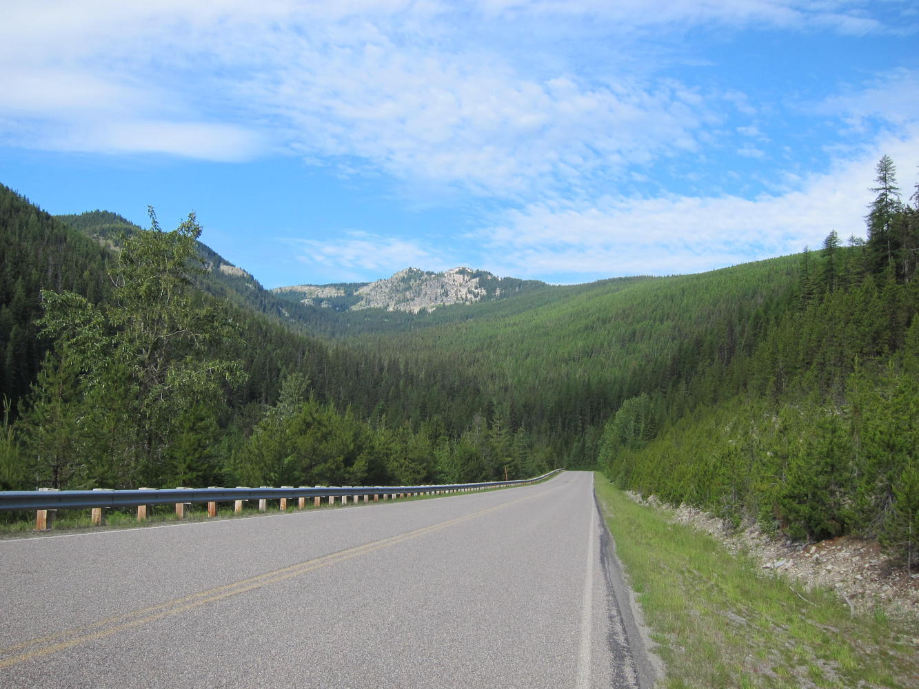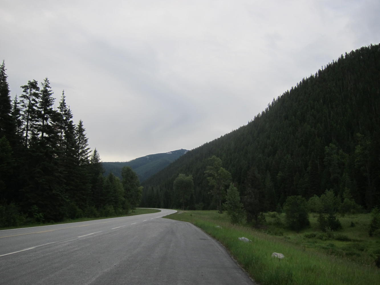 The road was almost entirely empty except for a logging truck every half hour or so. I would pull off and wave them by - it was easy for me to pull off I was going so slowly.