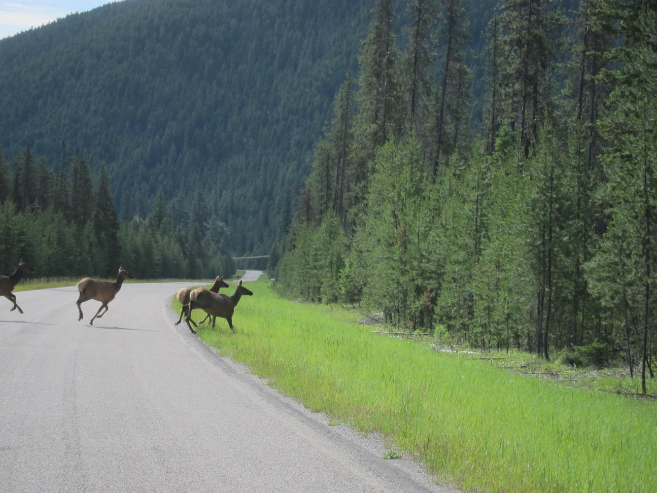 Then it was time for the well-deserved tide down the mountain. By now the sun had come out and the temperature was perfect. Mountains, elk, and streams with sunshine. Not bad.