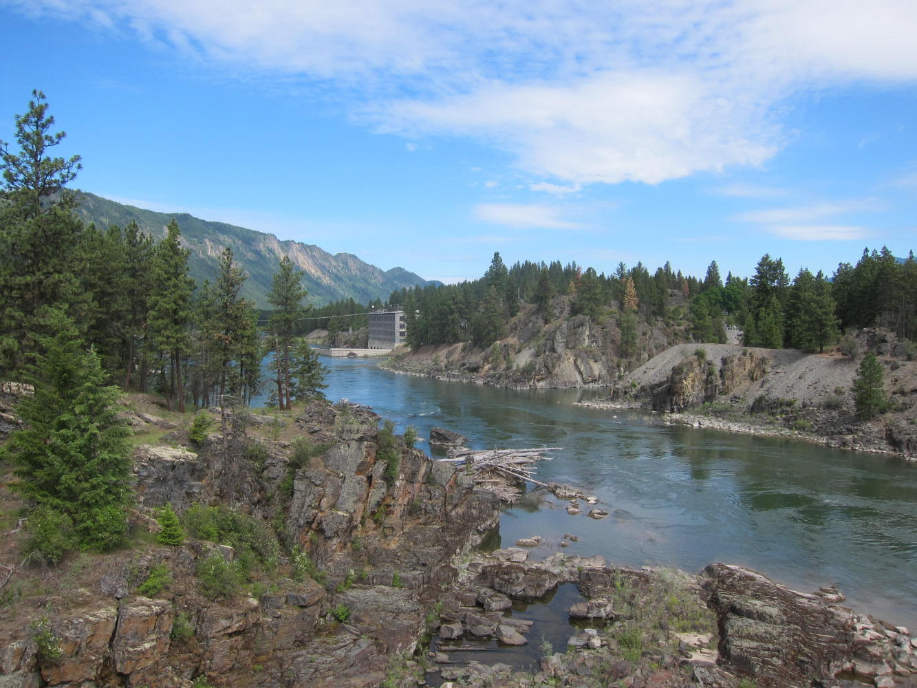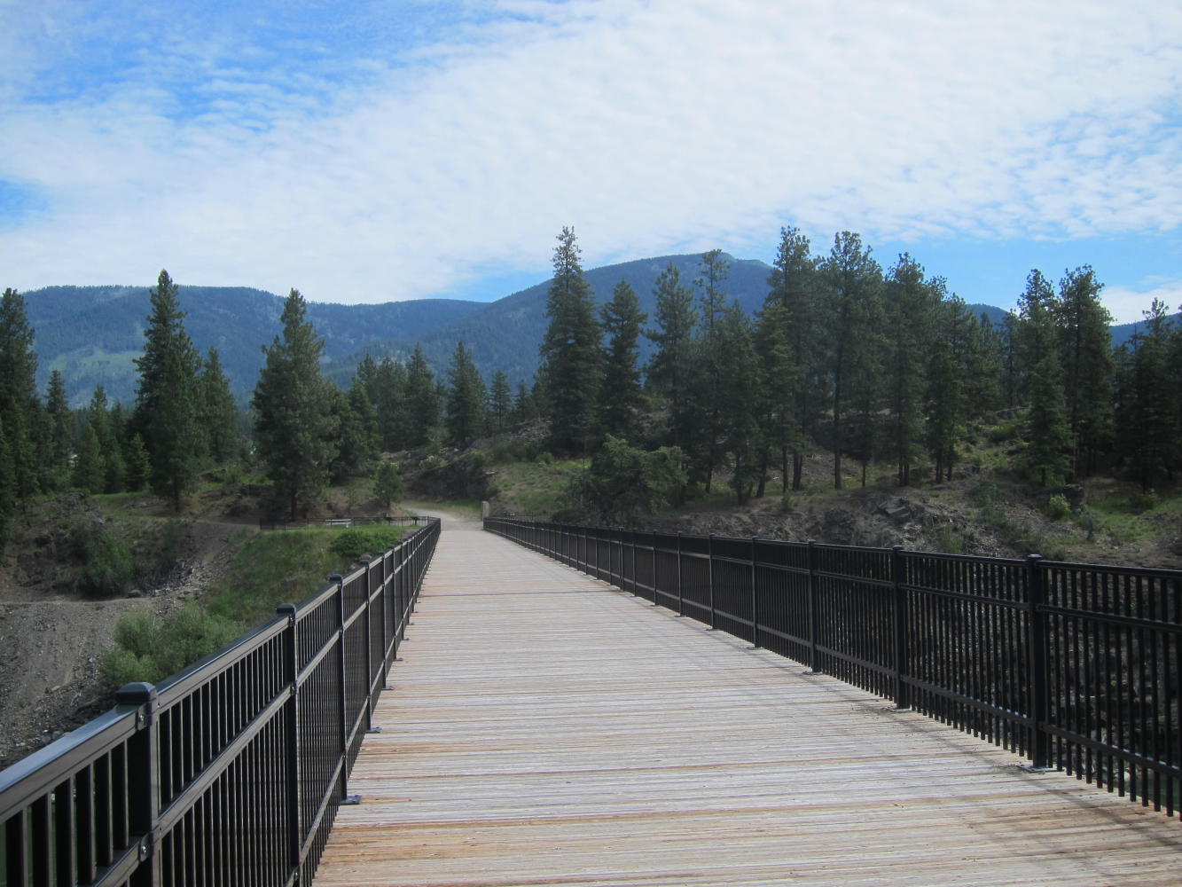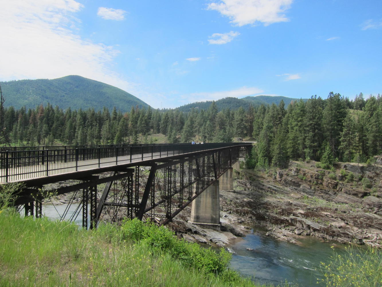 I took the Thompson Pass route for a couple of reasons. First, the road has almost no traffic and isn't too bad of a climb. But also, you end up at the High Bridge at Thompson Falls - a recently renovated railroad bridge 200 feet above the Clark Fork River, with an island park in the middle.