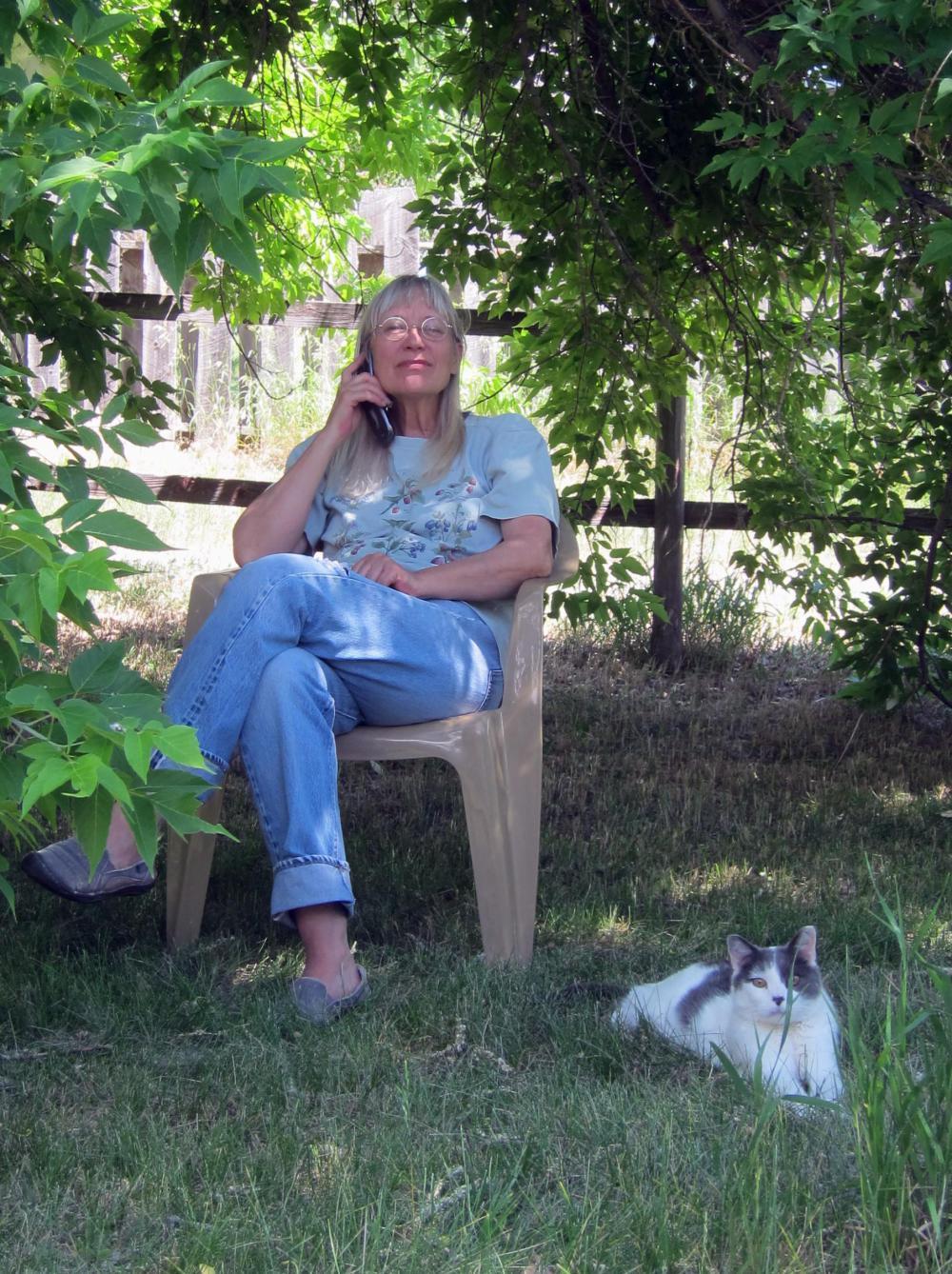 Rayma has been so wonderful watching the kitties. Mr. Pootie was a stray rescued from the alleys of Miles City, Montana. He went from frigid cold to pampered luxury - and deserves it. Ms. Stinkums was a stray who came up to my back door in Lawrence, Kansas 19 summers ago. She is an old lady, but still adorable. Rayma and I are the other strays who live here.