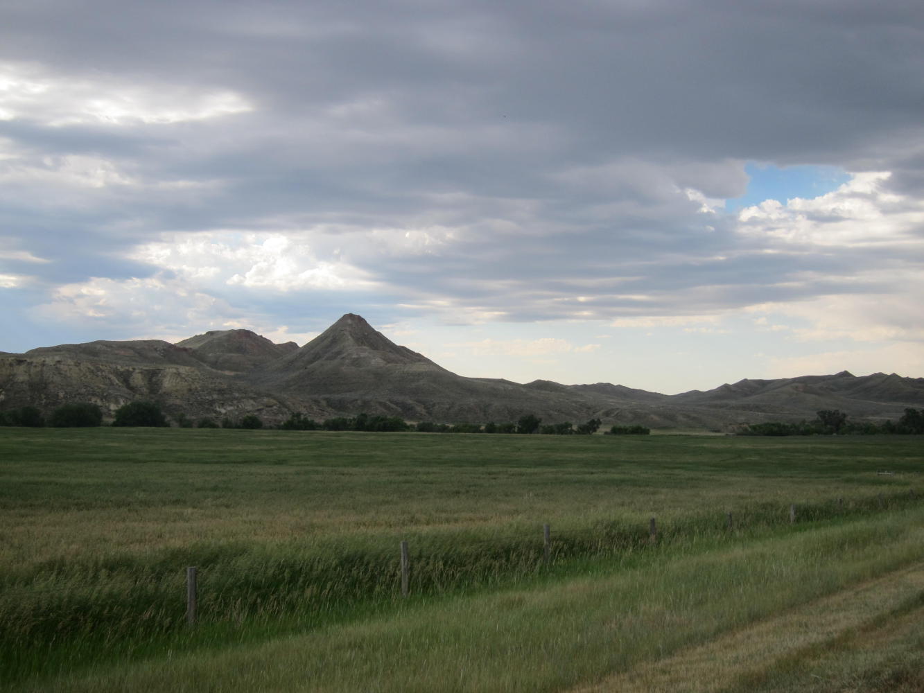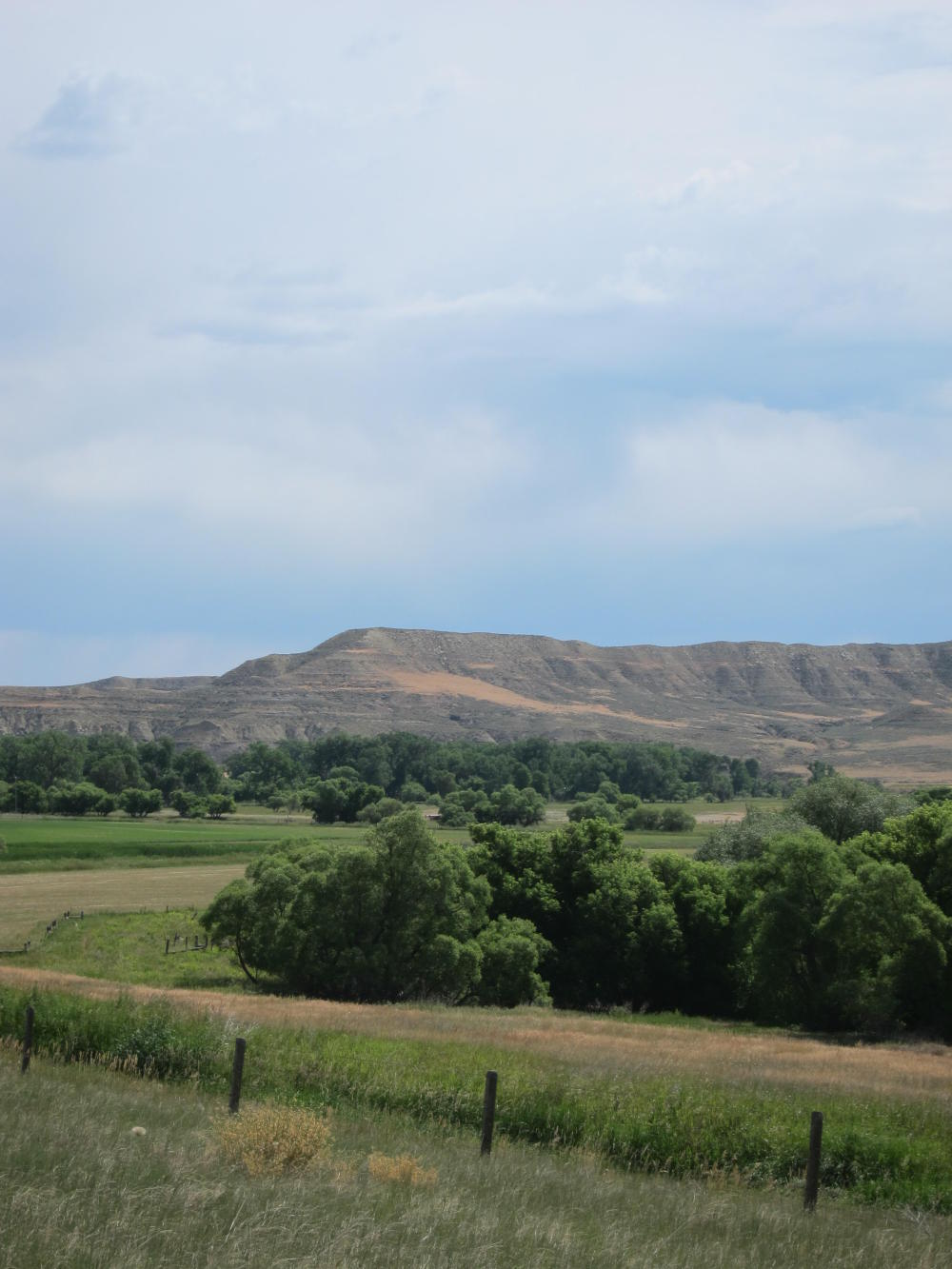 Got on the road at 7:00 and had an overcast morning riding along Clear Creek through the Red Hills. I used to take my Mom - she had late Alzheimer’s - out on rides to Ucross. She loved the red hills and the green meadows and would comment, “Look how blue the sky is!” And really, aren’t those the important things?It’s been more than 10 years, but it is hard simply to look at the color of the sky.