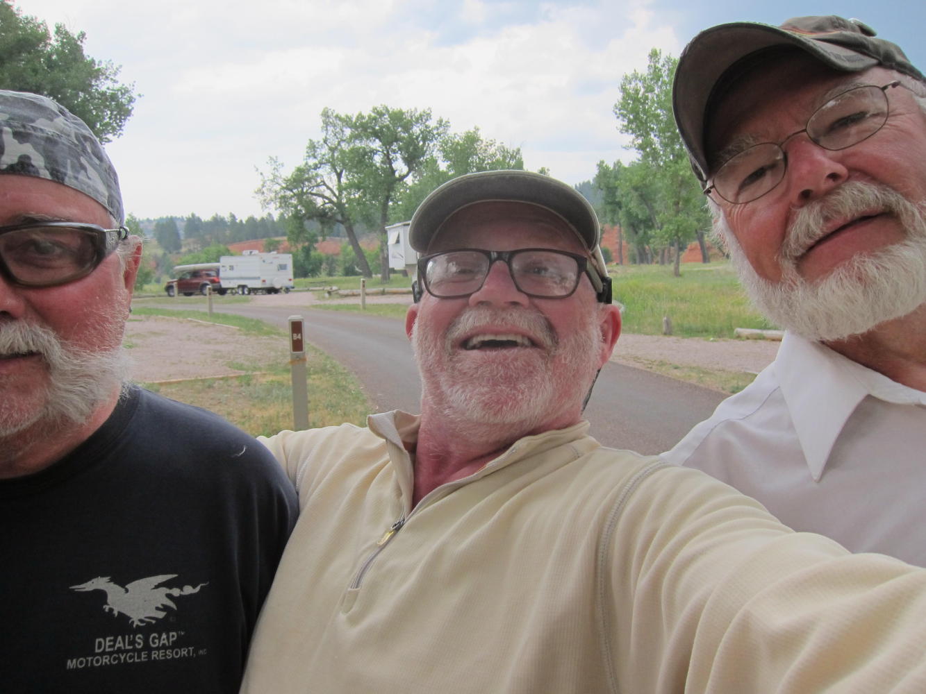 As I rode into one of the loops, I spotted another cyclist, Mike. He had been riding from Oregon. We conpared notes and laughed about things only touring cyclists find funny - like choice language on killer hills. Across the way, Max, a motorcyclist, joined us and we solved all the problems in the world in an hour or so. Always nice when a tough afternoon turns into a great evening.