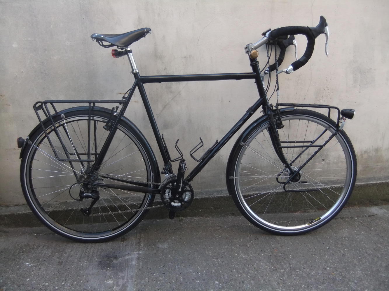 I bought a new 62cm Surly LHT frame at the end of 2010 and built this bike up from scratch, using parts from an older bike, or with parts from ebay where possible.