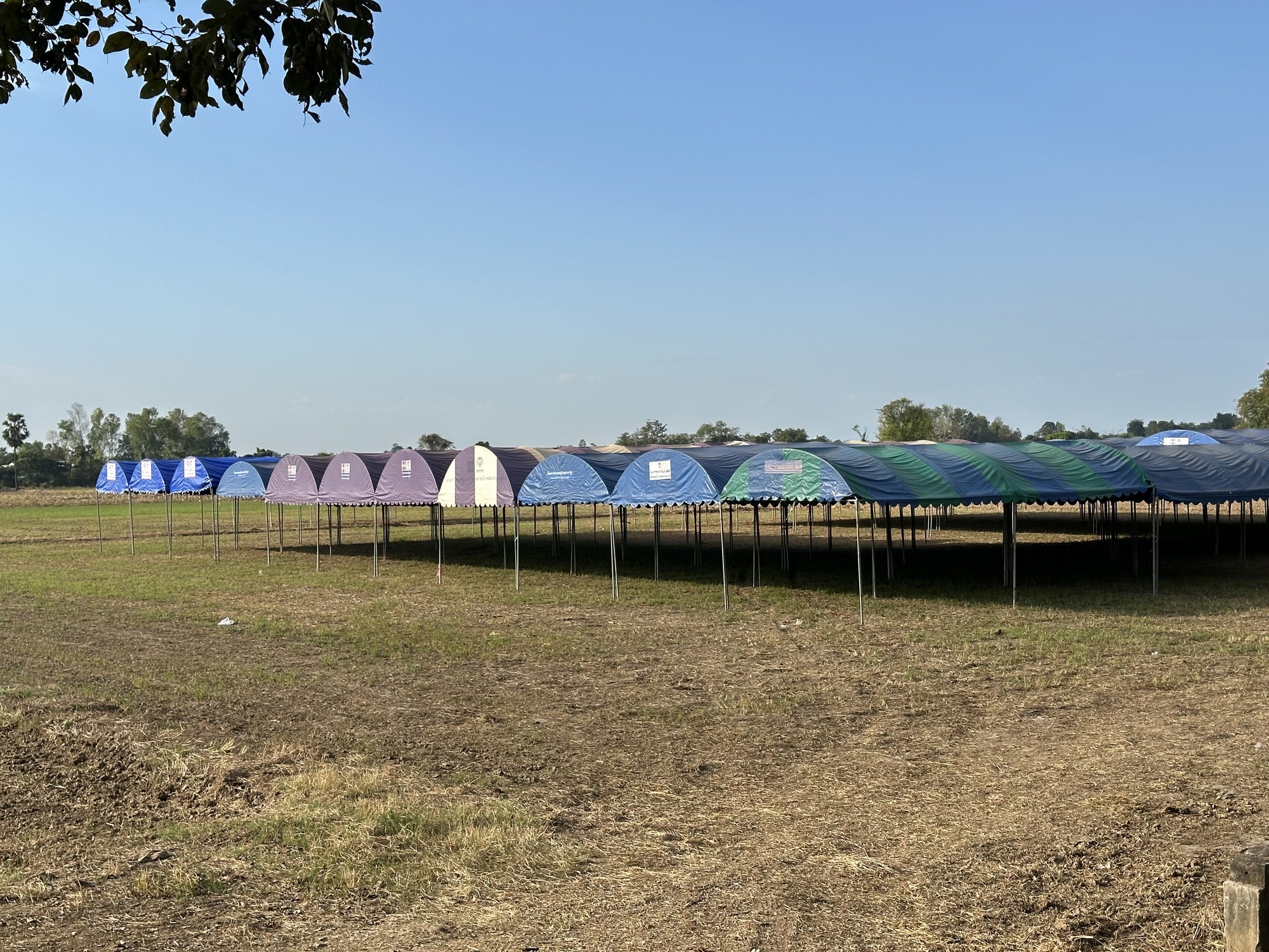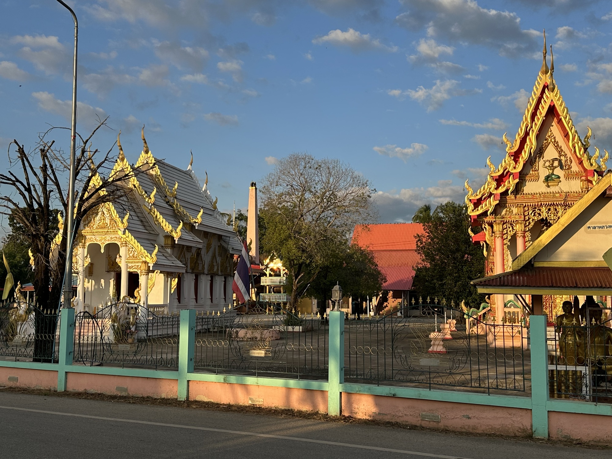And speaking of a lot going on.... As we entered our destination town of Si Samrong there was a Friday Market happening in full swing. I love happening upon a Friday Market. To me a Friday Market has similar energy to a traveling carnival and I get as excited. There are food vendors everywhere, like lots of them lining streets all the way down. There are vendors set up selling lots and lots of clothes and there is a section where guys have hundreds of knives, axes, machetes, planting tools, you name it if it was handmade like a blacksmith might have, all spread on a blanket on the ground. There are things like seeds and odd plants. This one went well into town and it took over the grounds of a large temple as well. A Friday Market is just super interesting and is a throwback to another era. I remember them in the '70's in Thailand and they haven't really changed except some of those sold water buffalo in the nearby forest.