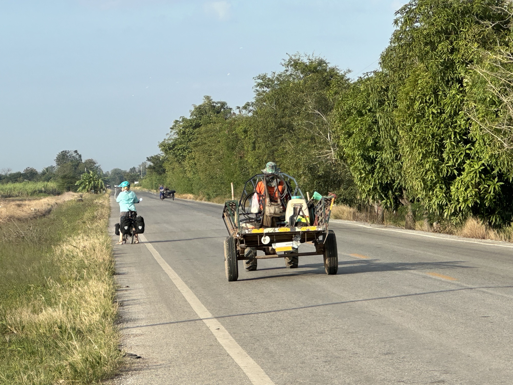 We did leave our bungalow early since we hadn't found a papaya along the road the day before. We didn't even make ourselves any coffee. We just packed up and left and were on the road at 7:10AM, the earliest yet. We can't really leave any earlier than 7 because the sun isn't up enough. It's light at 6:30 but we don't think it's all that safe and we don't want to bother putting on our lights.