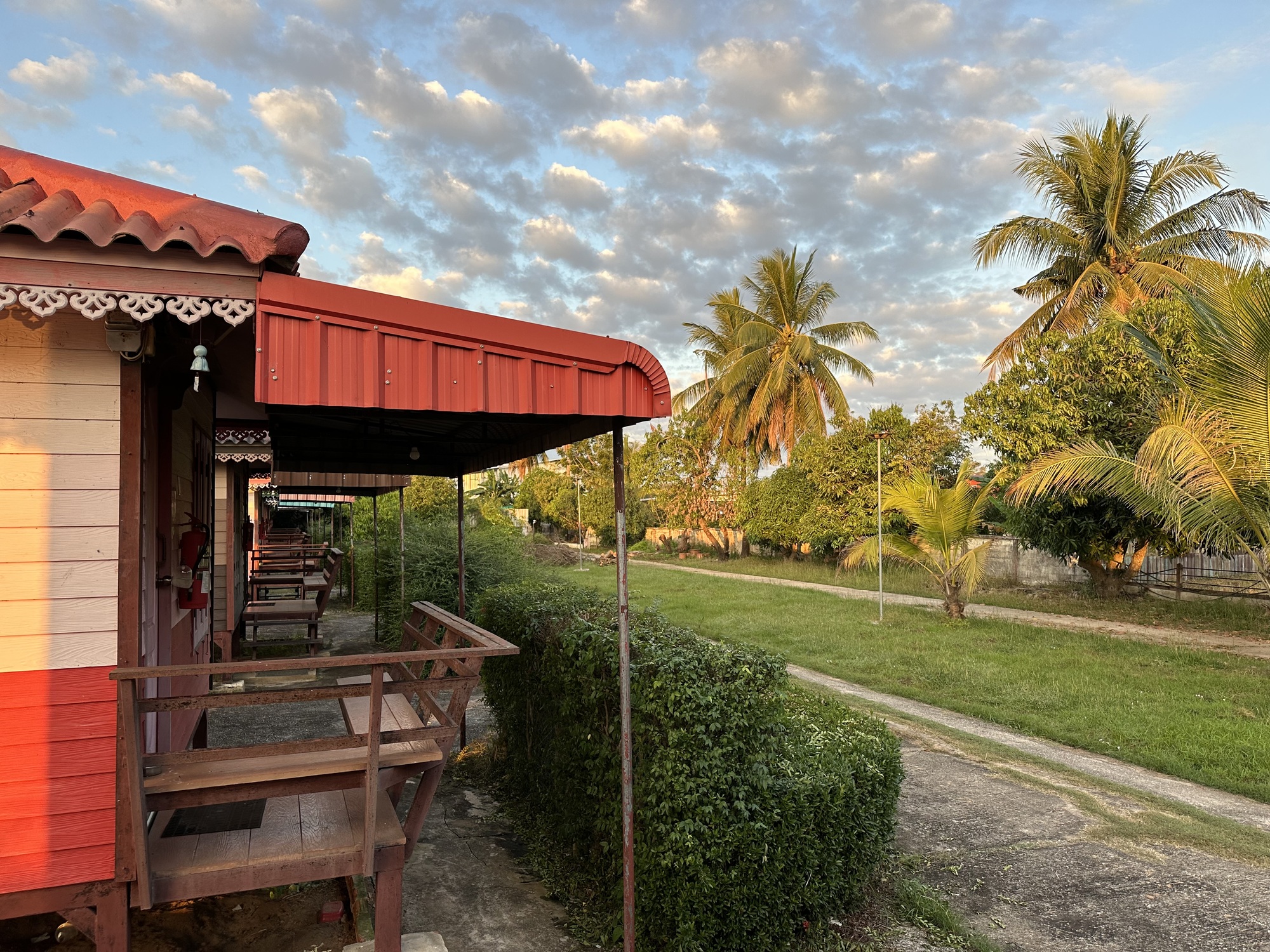 Thousands of frogs were having quite a night of talking together as they swallowed tons of mosquitoes and other insects. All night they were partying right behind our bungalow. We loved hearing them but at 5AM they suddenly went silent. Five minutes later we heard the rumbling. It got louder and louder until we were certain a bulldozer was about to demolish our little bungalow. It was within a few feet of the back end of the bungalow when Andrea finally jumped up to look out the window. I was more lethargic at that hour and was not believing it was actually a bulldozer about to demolish our bungalow. I knew there were train tracks nearby and I was still thinking it must be a train. This is how Andrea will save my life. I will want to sleep some more and think that no, that huge low engine sound couldn't be a bulldozer three feet from our bungalow, but she will actually look out the window to find out.