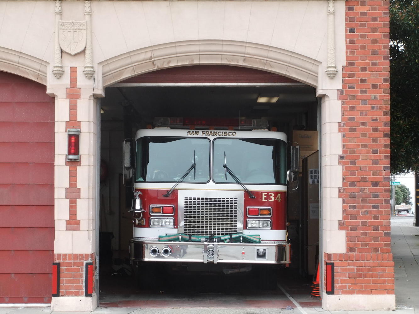 Having just ridden up the steep hill from Cliff House, I stopped to take a photo of a fire engine at a picturesque station and have a snack. One of the fire fighters appeared and started chatting, ending in a tour of the station and a refilling of the water bottles. Thanks Tom.