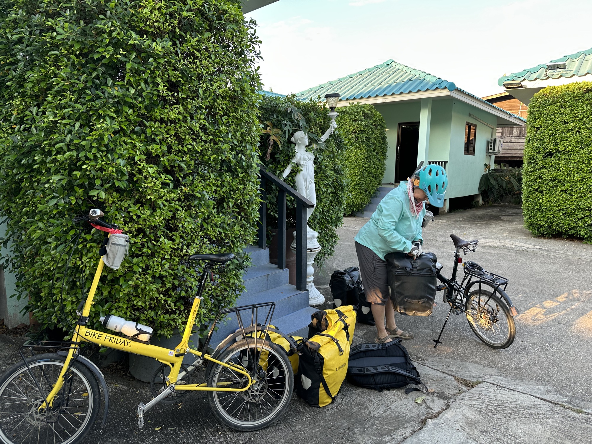 The tailwind continued even on less traveled roads so by noon we were approaching Kamphaeng Phet, a town we stayed in three years ago and liked so much we are planning on a pre-Christmas rest period here. We weren’t sure there would be a room available for three or four days. Looking at booking sites it wasn’t readily apparent, but we’ve stopped using those for the most part because they inflate the prices, have some hidden fees, and the hotels themselves don’t make as much money. Unless it’s a big city place on an important holiday we are better served by rocking up to the door (early in the day if possible) and booking on the spot, cash in hand.