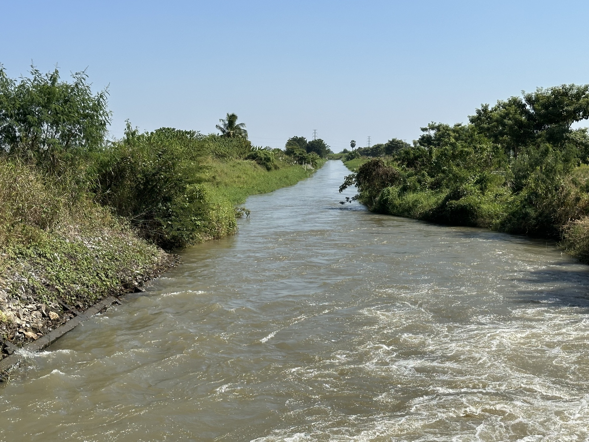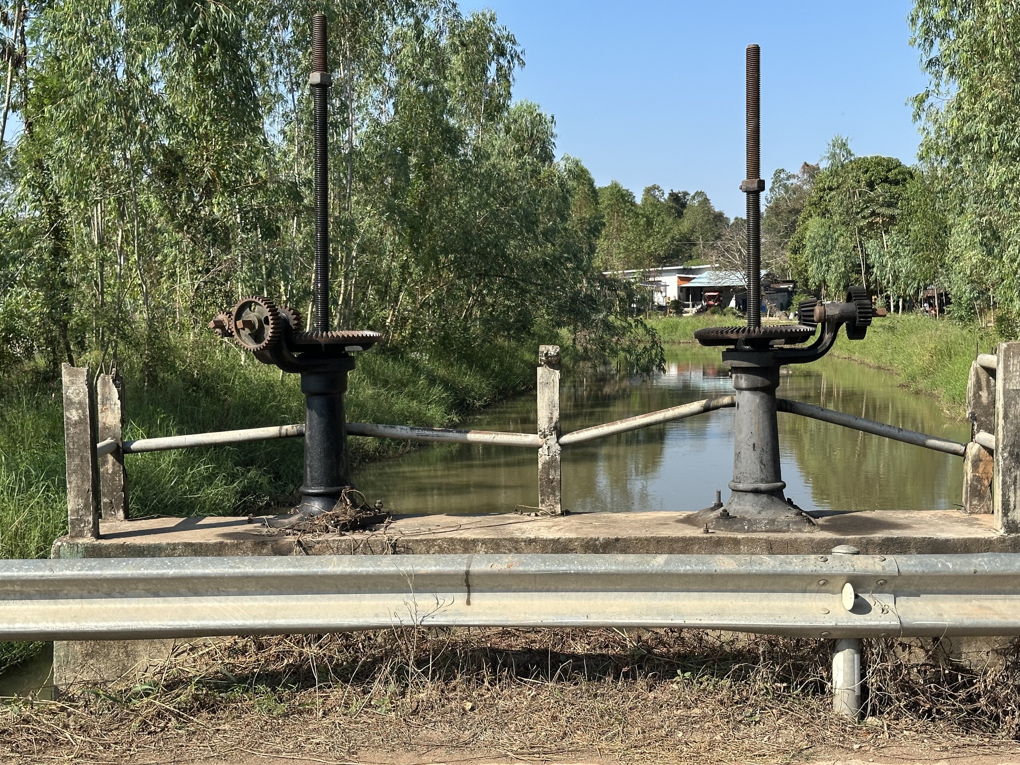 But we did eventually leave 101 and go onto a series of rice roads. Irrigation is a big deal here, as management of thousands of acres of a water-dependent crop has to be decided on by the local water czar and individual farmers given permission to start pumping into their fields. We followed a lot of long straight irrigation canals, really in the middle of nowhere. Small locks, different kinds of pumps (some driven by plow motors), it’s all pretty interesting. When I was a kid my grandparents’ farm in Missoula was criss-crossed with community irrigation ditches, some big enough to swim in, which we did. Don’t think it didn’t cross my mind as we rode through those sunbaked farming areas.