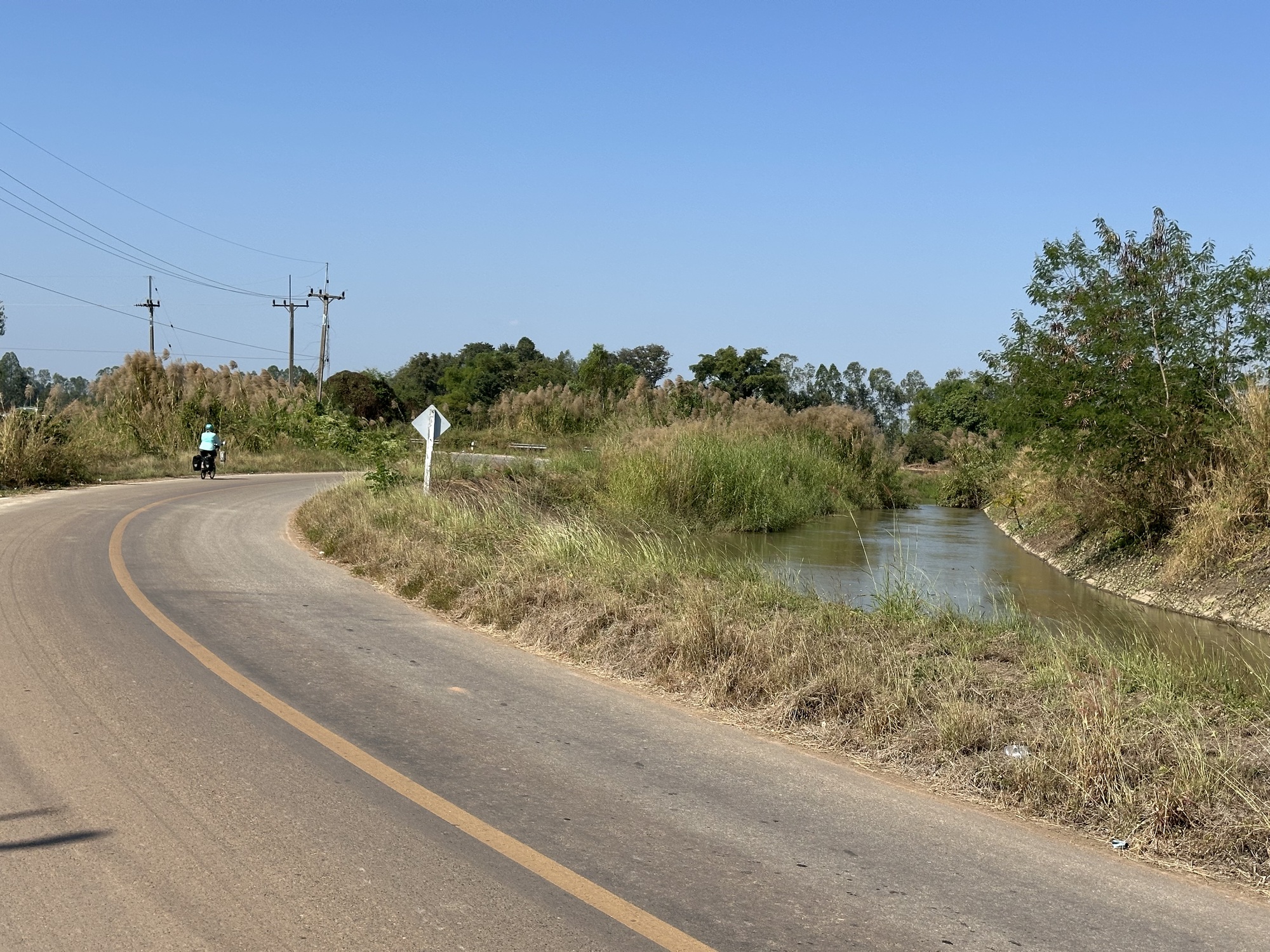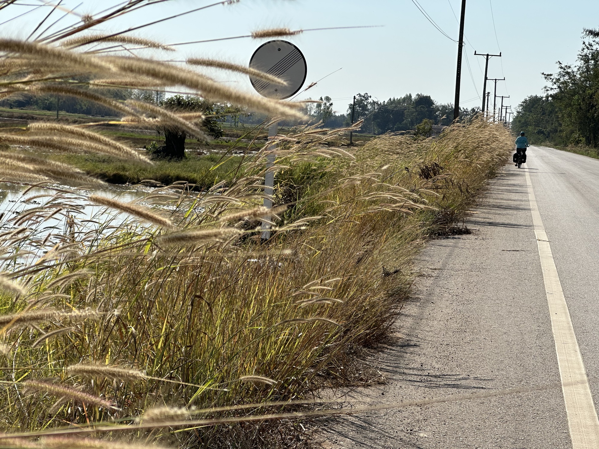 As we’ve mentioned earlier in the trip, like back when we were riding north from Nan, there has been a significant wind from the north. Today, it was our friend, blowing hard again as we piloted south on the highway. The highway with very, very little early Sunday morning traffic, with a buttercream surface, wide shoulders. A tailwind. We sailed, baby.