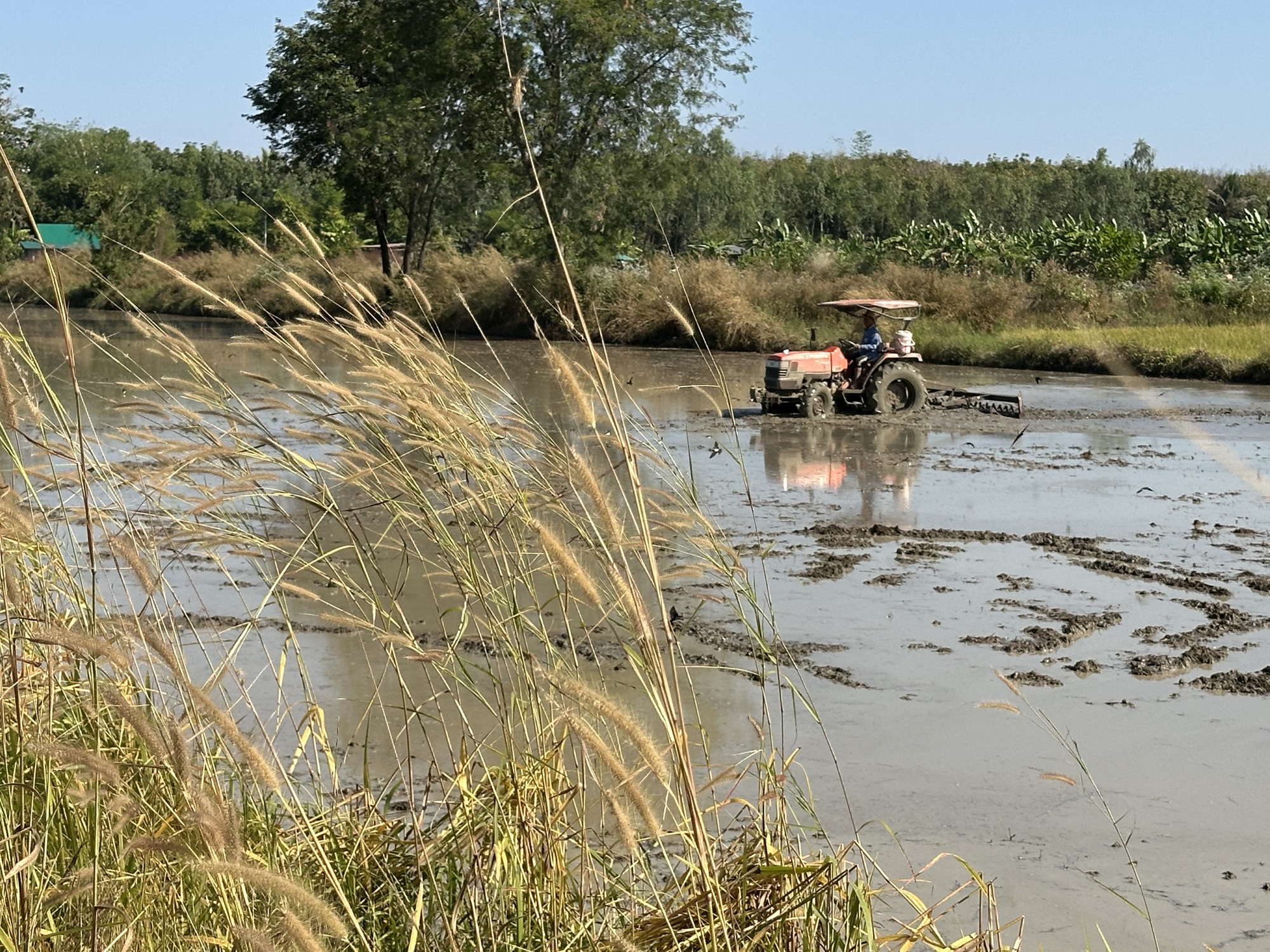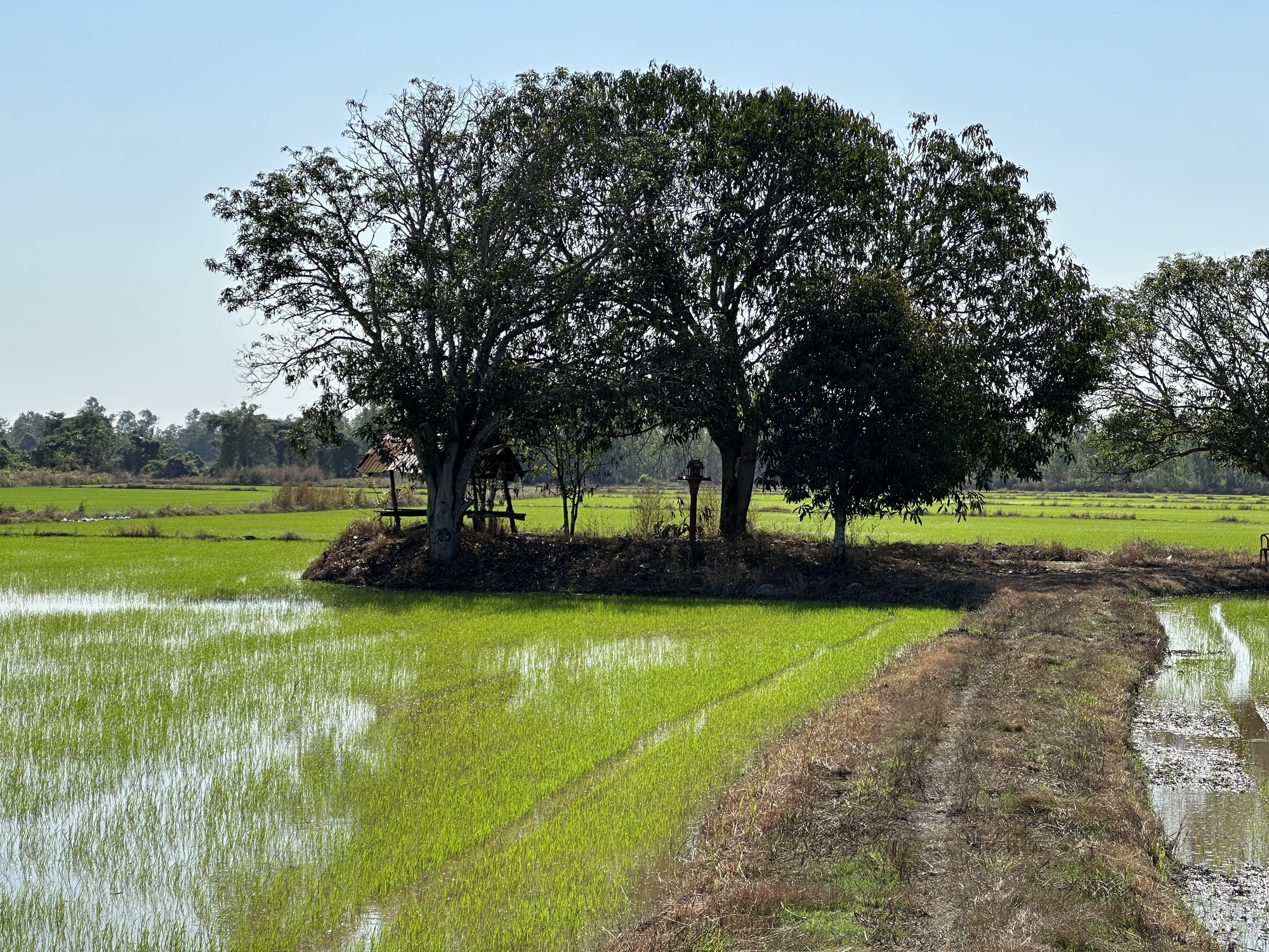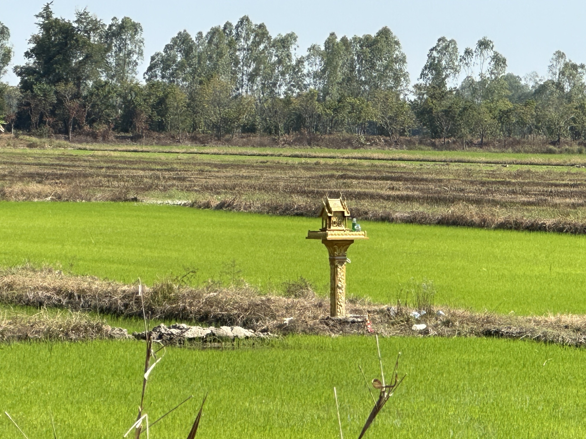 Today’s route was going to be a bit long for us. Since the weather has heated up to what are basically normal December central Thailand temperatures we really need to be out of the sun and heat by midday. We were going to start out on Highway 101, which is a relatively busy four-lane, not our favorite, and then leave it as soon as possible to take a bunch of quiet back roads, all of which go through rice fields, maybe a small village here or there.