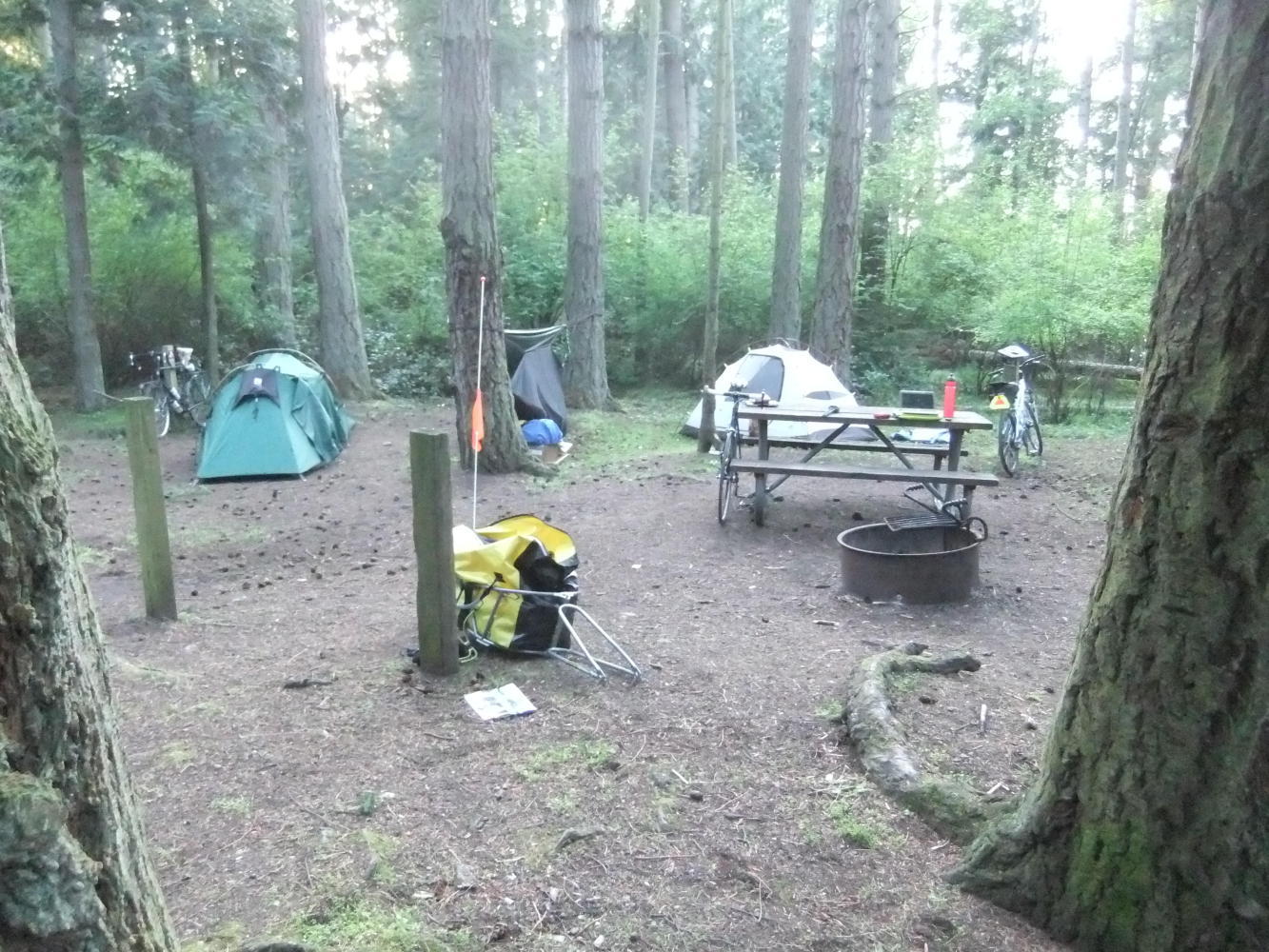 After eventually tracking down a shop to buy a decent map of the San Juan Islands, I made my way to the Washington Park Campground. Being unwilling to spend $17 on a site, I found another person alone on one and we agreed to share it, he was Thomas, who is preparing a yacht to sail to Oregon and then live on, and had slung a hammock between 2 trees to sleep on. Shortly afterwards Neil, a fellow crazyguy and his wife Janice also joined us. They had just returned from a week touring the San Juan's and were full of useful tips and advice. Again, what could have been a quiet night alone was quickly transformed into a great time with strangers who soon became friends.