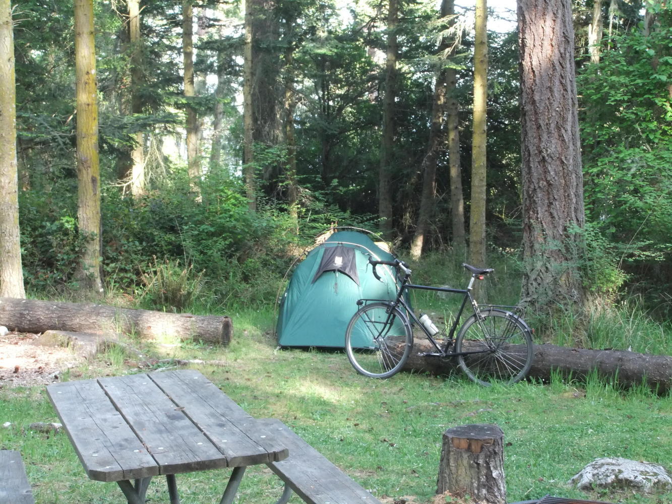 Whilst exploring the island I saw 2 familiar bikes propping up a hedge, and when setting up camp at the Shaw Island County Park Campground, one of the coolest sites so far with the most way out and whacky restrooms, Nigel and Chelsea reappeared, and we spent the rest of the afternoon chilling and chatting in the sun.
