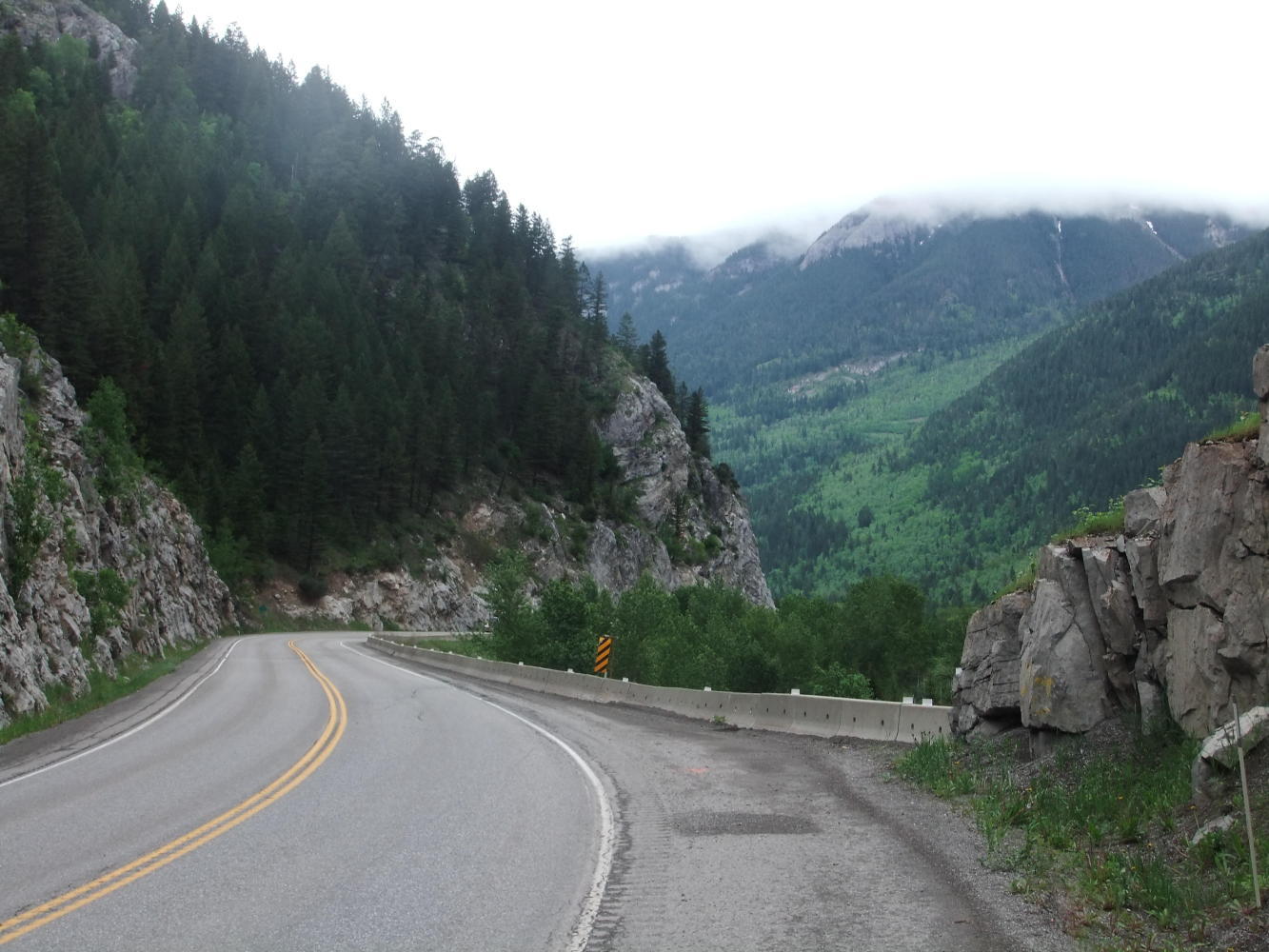 I was late getting on the road this morning. It could have been the rain that caused this, but I think it was most likely the jet lag from crossing through the time barrier yesterday. Once on the road it was waterproofs on for the first couple of hours, and alternating head and tail winds all day as I zig zagged through the mountains to Sparwood.