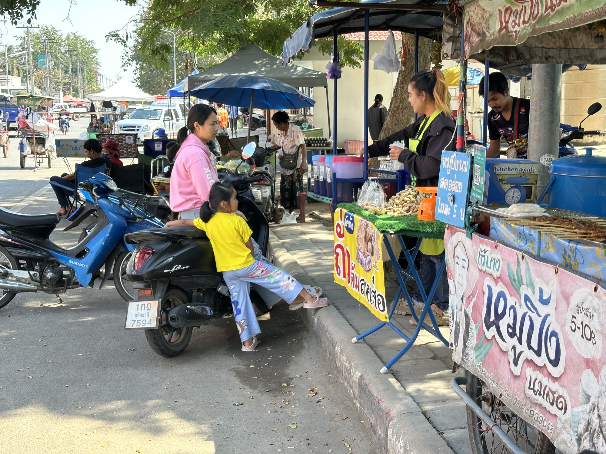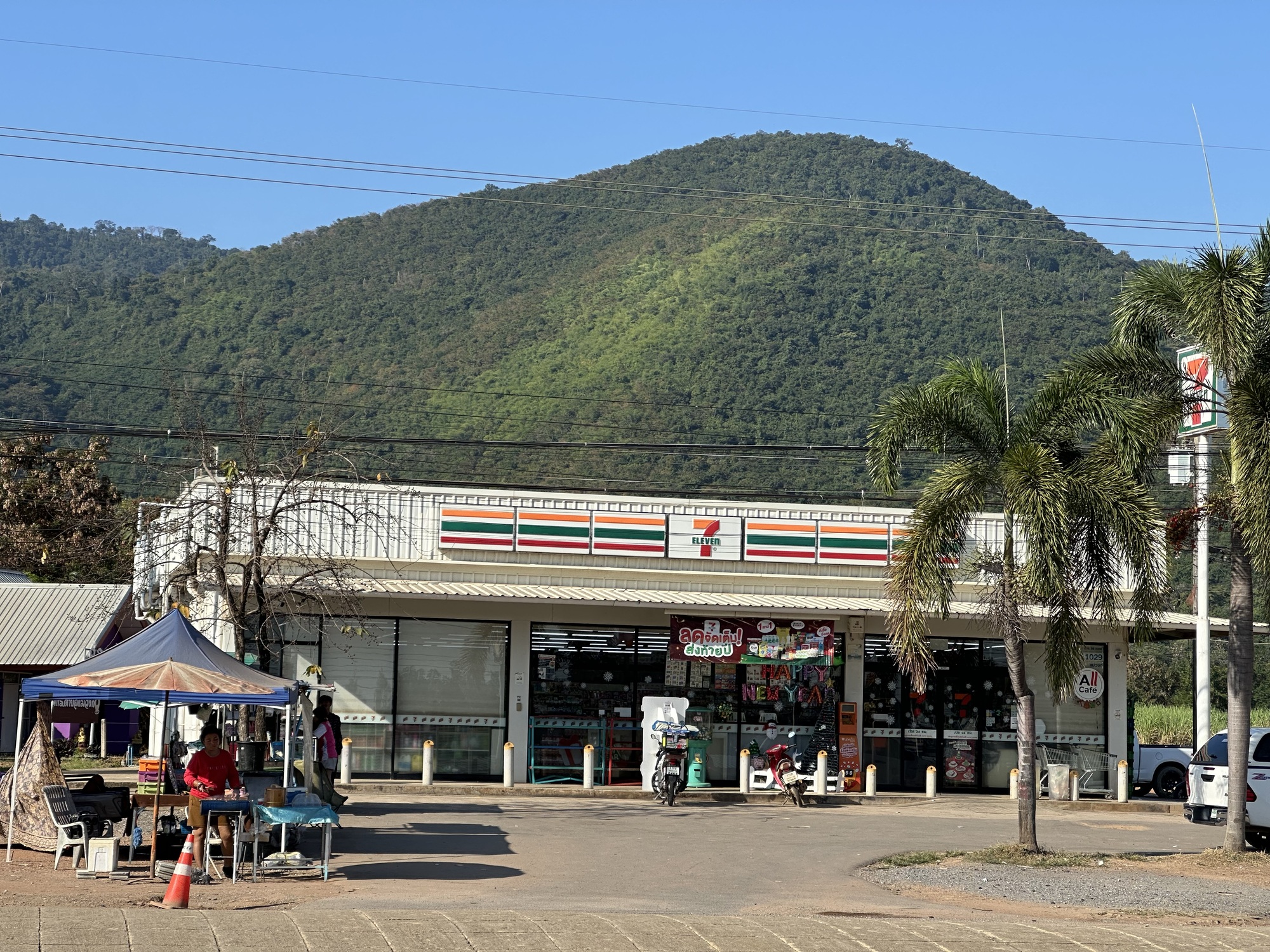 We got into Lan Sak and went looking for a coffee shop where we could get an icy drink and consider our options. Lan Sak turned out to be a bustling little market town and I realized that the stern text messages I’ve been getting from AIS (my cell phone provider) to follow Thai law and get my phone number re-registered with a photo of myself and my passport or else needed to be answered by a more competent person than myself.