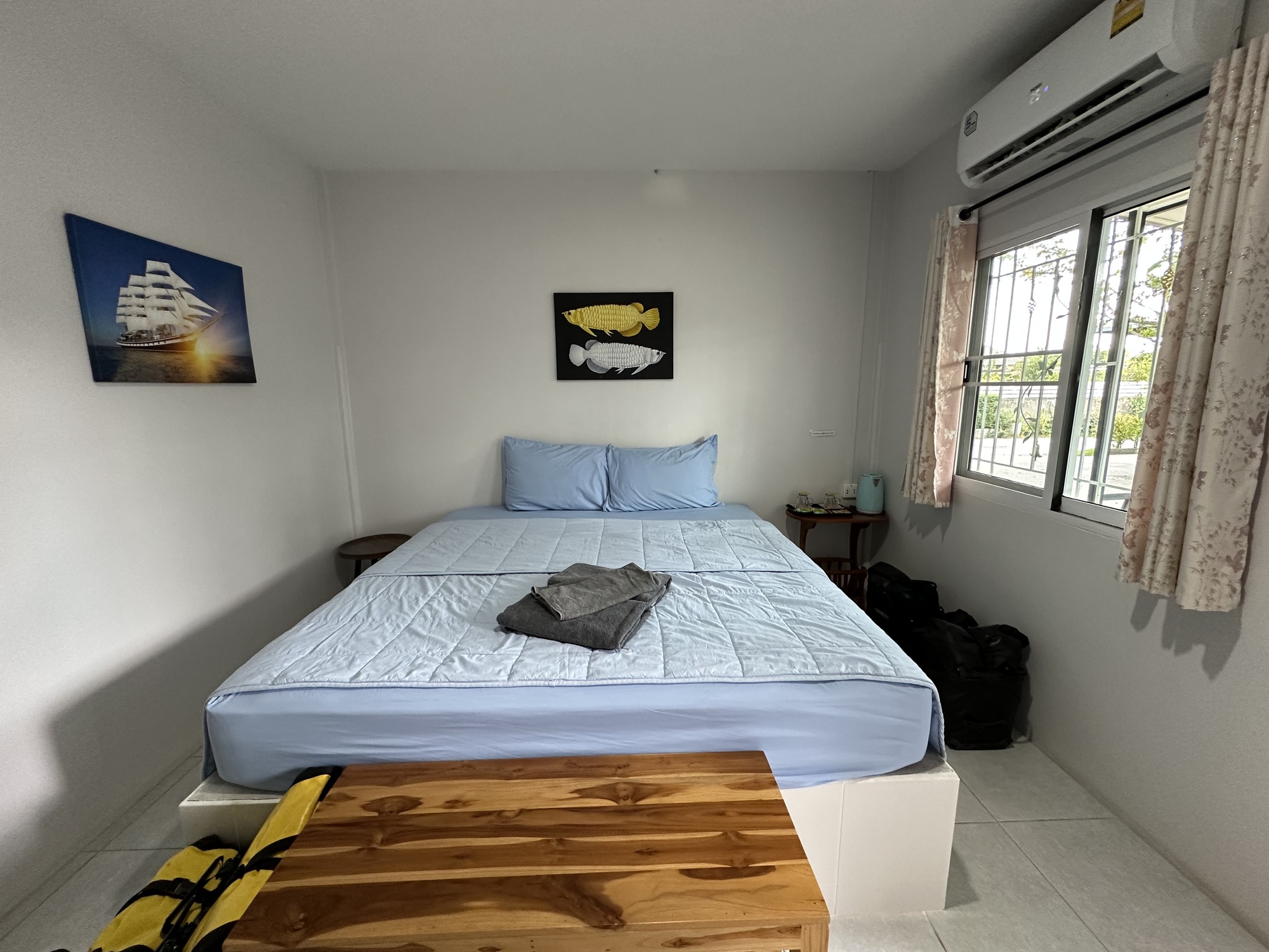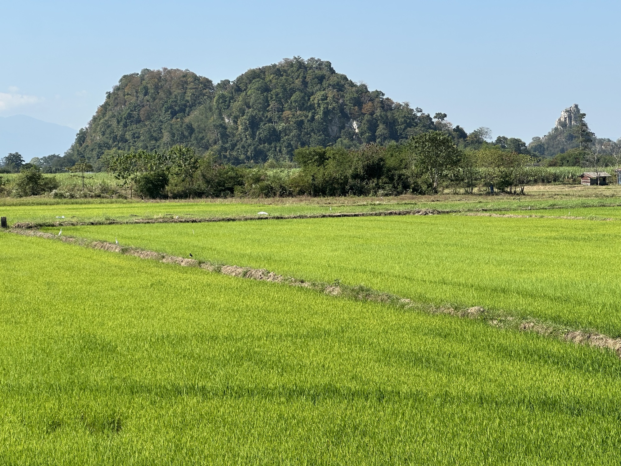 But the AIS lady had me all up and lawful in two shakes of a lamb’s tail and we found our guesthouse out in the rice fields and I got my shower and air conditioning and there is a restaurant across the street so we’re good. Well, mostly good. There’s still a little matter of that potential saddle sore.