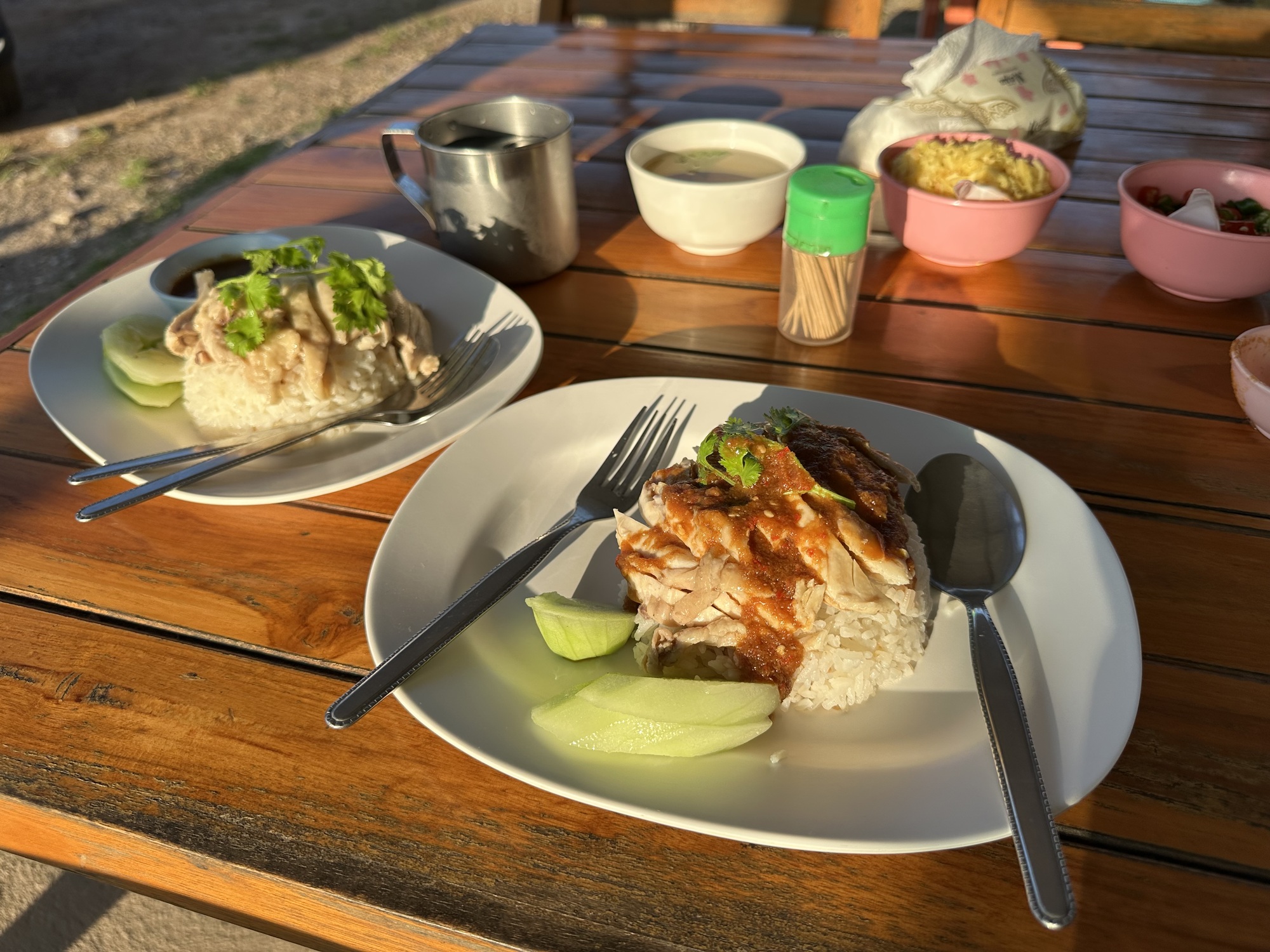 Nearby the guesthouse was a highly recommended khao man gai (chicken rice) place and it made a perfect breakfast. But temperatures are still in the mid-80s by noon which means near 100 on the pavement so let’s get going.