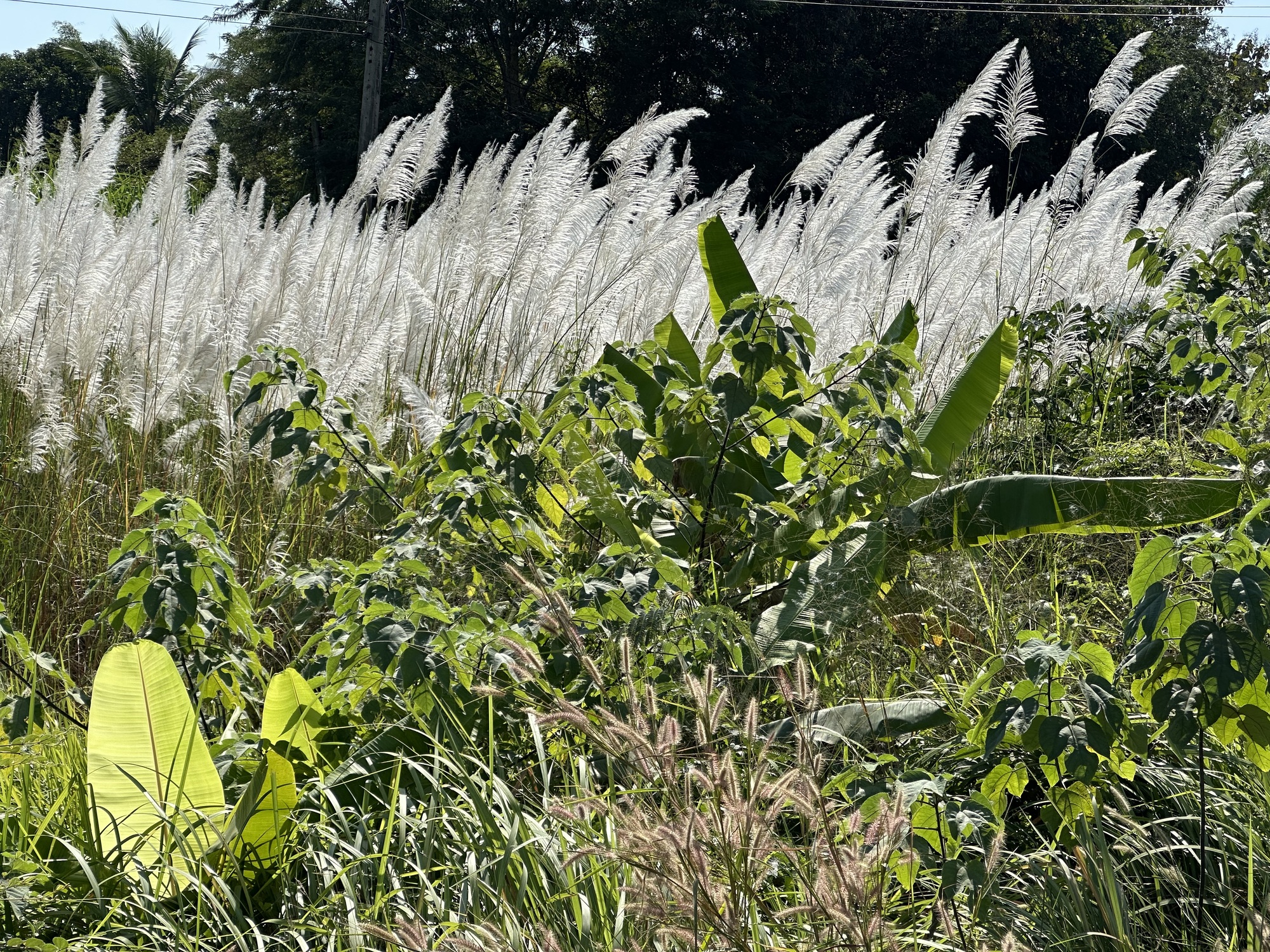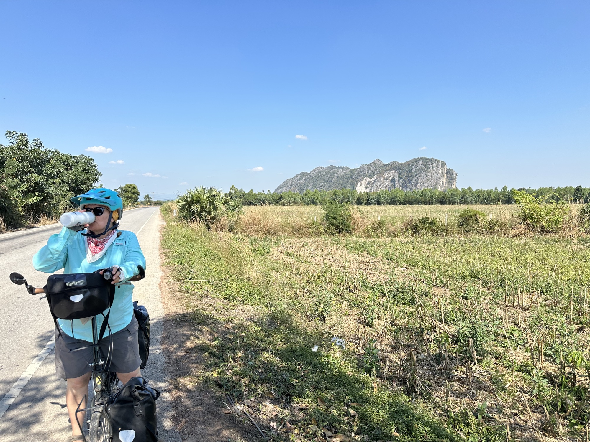 It’s a small highway, and is in unusually bad (for Thailand) condition, with lots of raggedy patches and an overgrown shoulder. There would be intermittent stretches of new asphalt and a wider shoulder but then it would devolve again. Huge sugar cane trucks with double trailers would wail by us. The long straight stretches made nearly all the other traffic fly by too. It wasn’t heavy traffic, but the drivers seemed to be bunched up and all meeting and passing each other at the same time.