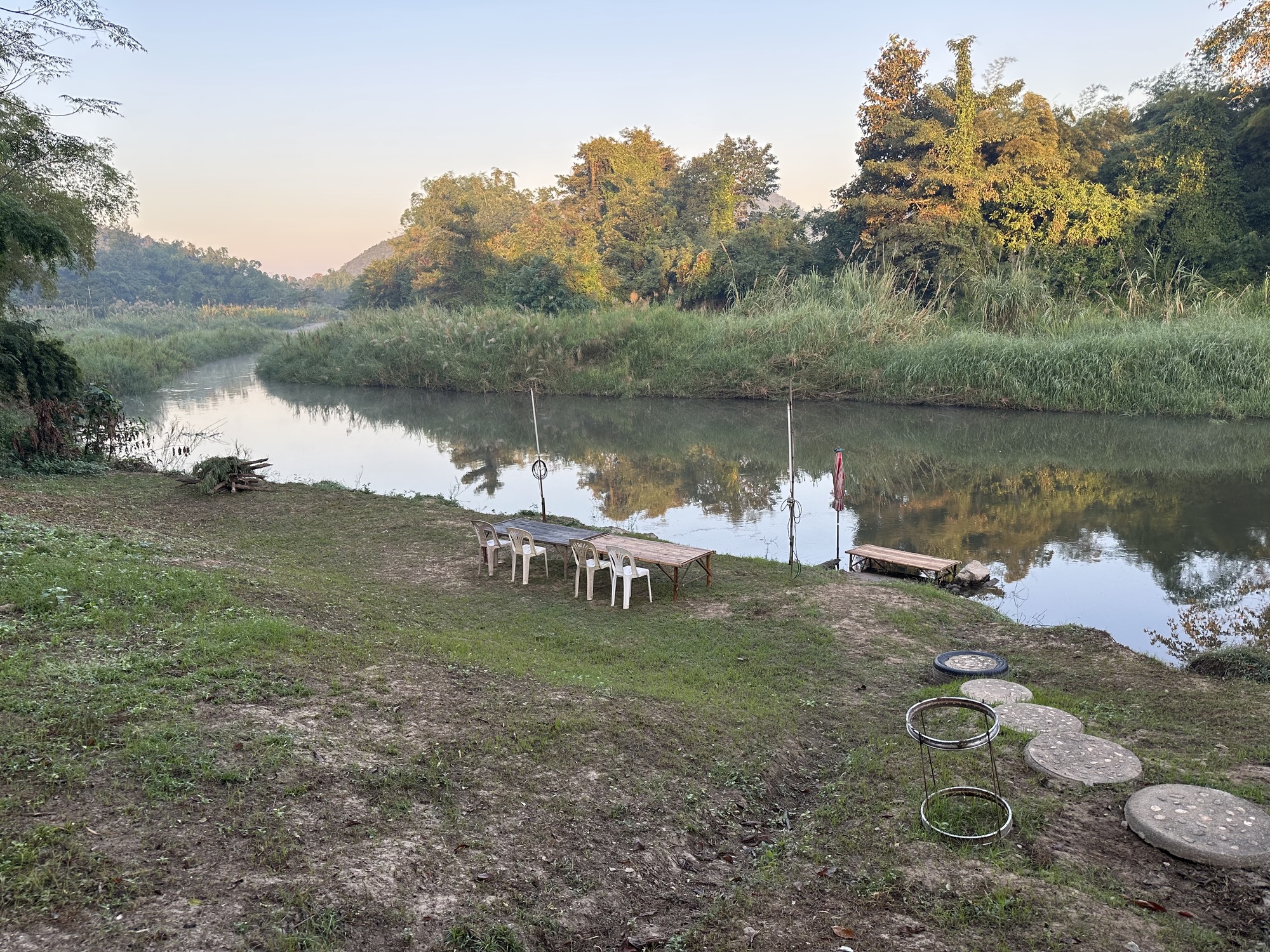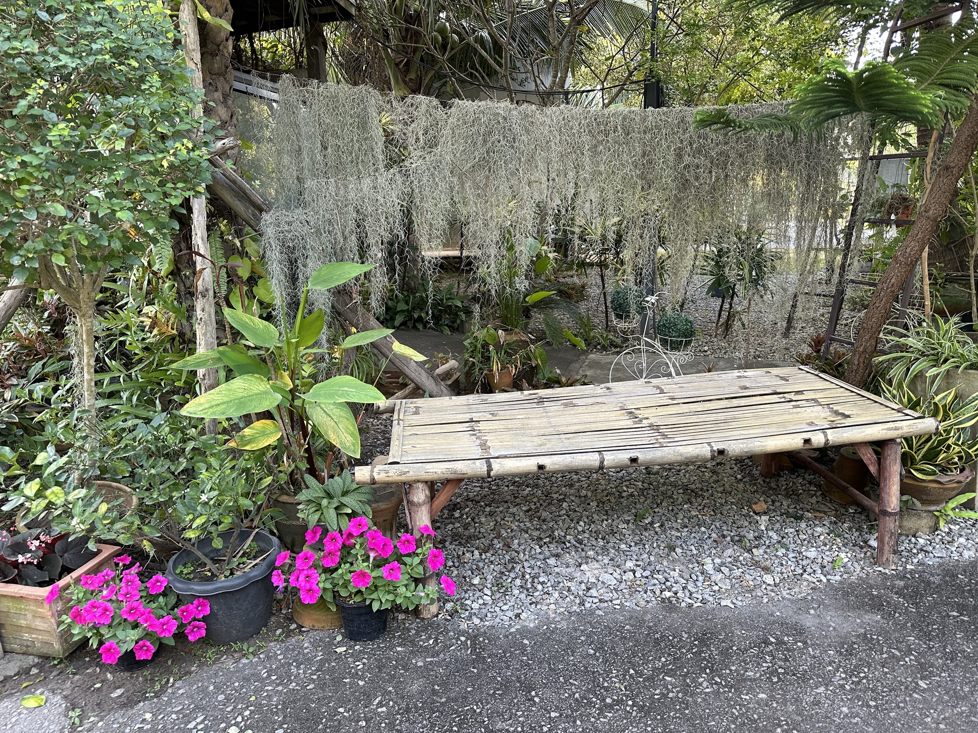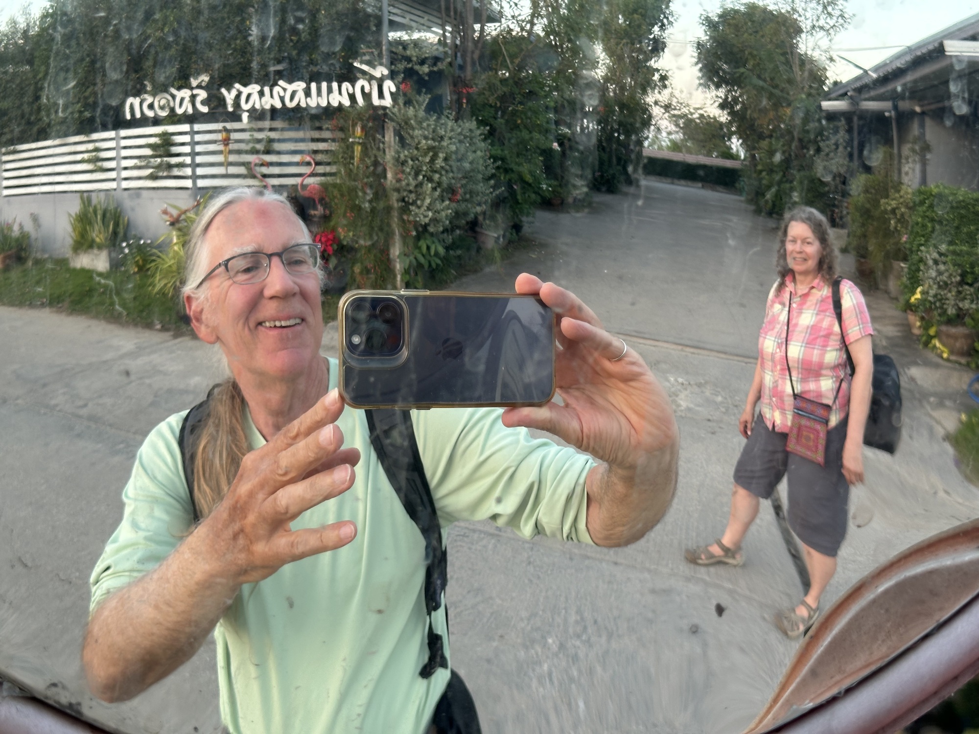 But we did a little of that in the morning, there were coffee packets and hot water and small snacks on offer and we enjoyed that for a few moments before leaving. The birdsong I’d been blissing out on was suddenly interrupted by the owner putting on some Anne Murray song that would earworm torment me for the remainder of the day. You don’t expect Anne Murray in Thailand, in fact I hadn’t heard Anne Murray’s music since I flew on Air Canada in 1985. Bruce had never heard of Anne Murray but agreed it was time to leave.