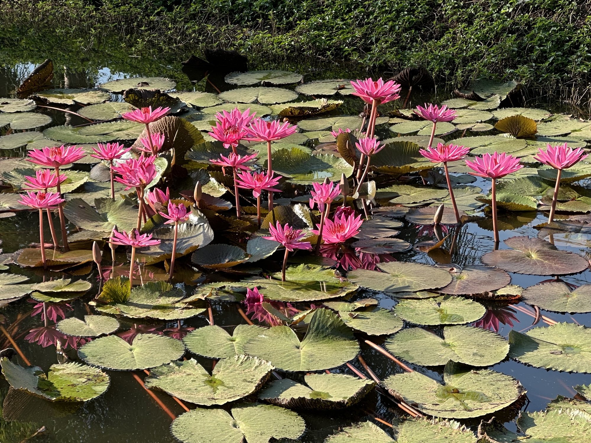 I am not a person who sleeps through the night so when I woke up and it was 5:30 AM I was thrilled to pieces. Not enough to go back to sleep of course. It had been a hot, tiring day yesterday and I fell asleep before 9, I’m sure. Our guesthouse host was probably a little hurt that we disappeared into our bungalow in the early afternoon and never came out again, even to see his lovely plantings and all the sweet places along the riverside to sit and watch kingfishers and other natural wonders.