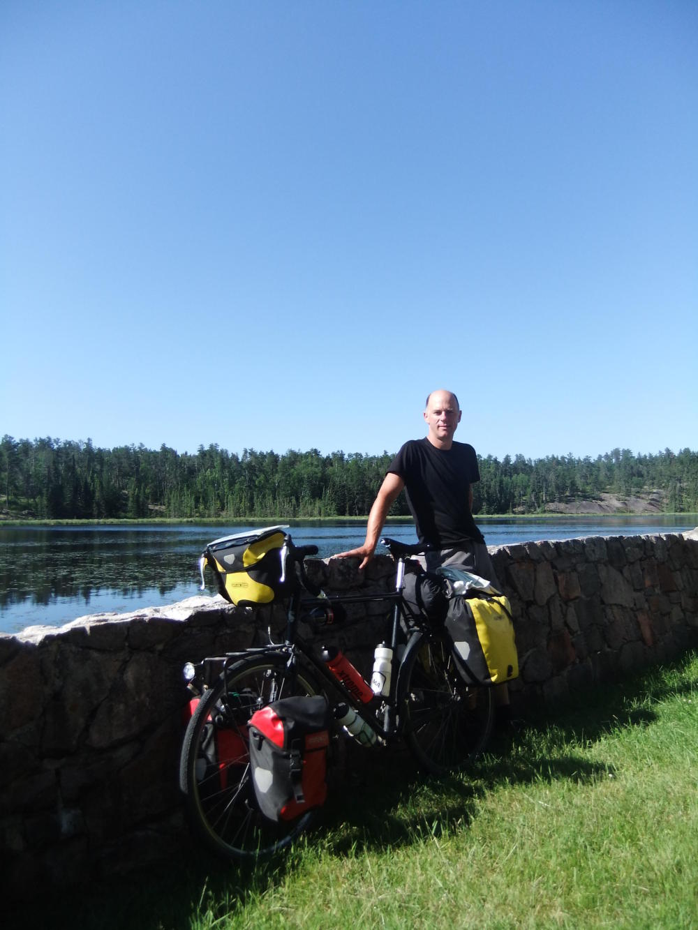 Kate rode on to the campground at the Rushing River Provincial Park whilst I stayed in town for some wifi, and when I caught up at the campsite was ready for a swim in the lake, my first freshwater one so far, before making a curry fit for a king, watching the sun setting over the lake, and turning in for the night.