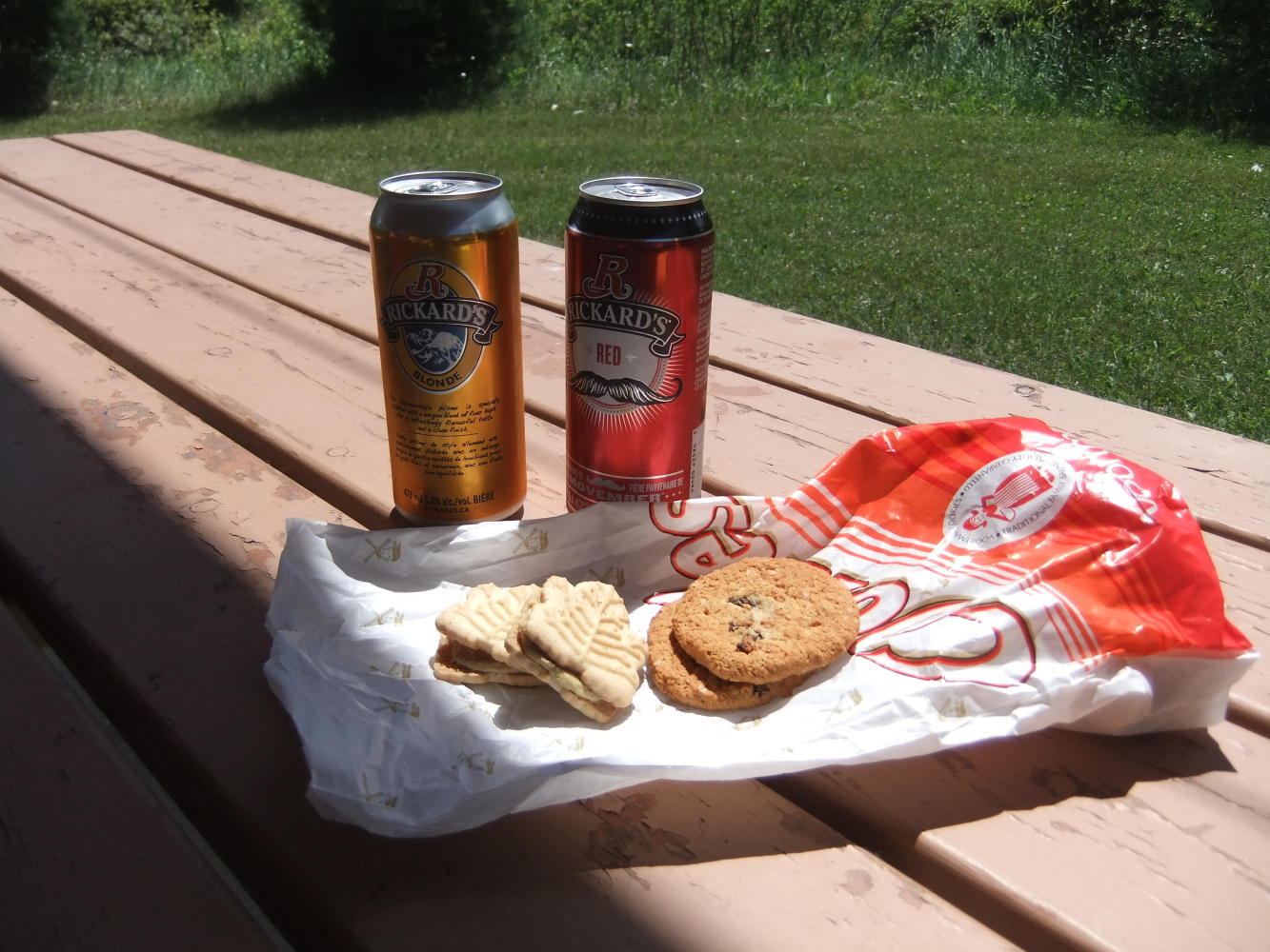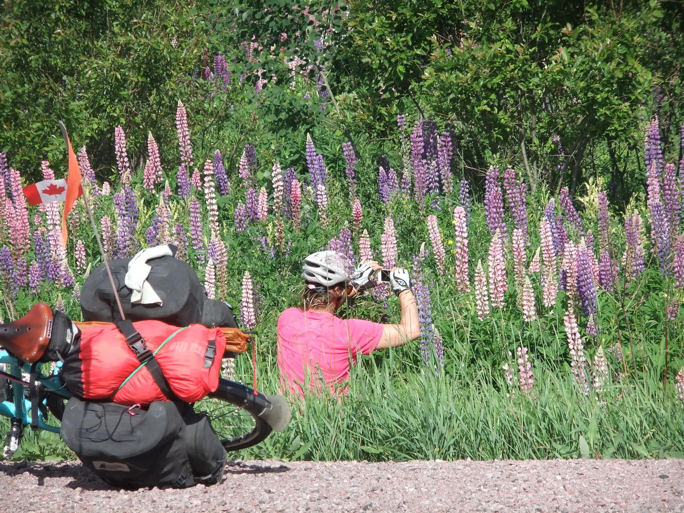 We rode on the busy Trans Canada Highway virtually all day today, which was very tiring mentally after the peace of the quiet roads which have been the normal for so long. At hungry o'clock we came off at Hurkett for some lunch, and decided to ride the loop for a change, but had missed the first turn off, so rode an extra 5 miles or so. It made a welcome change to sit in the sunshine, not the shade, whilst eating, which has been made possible by the cooling effect of Lake Superior.