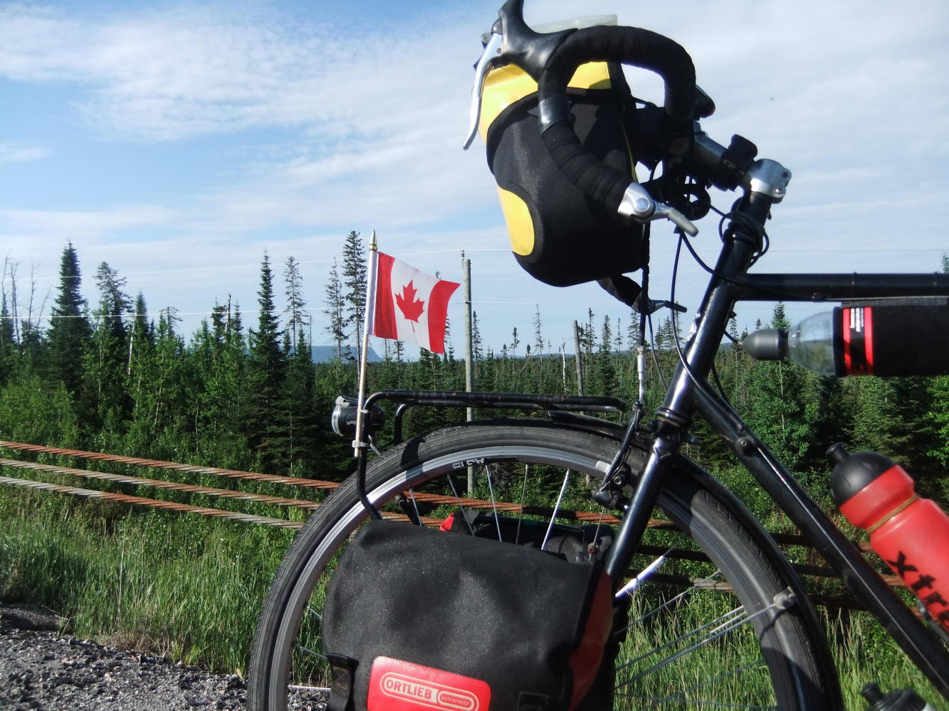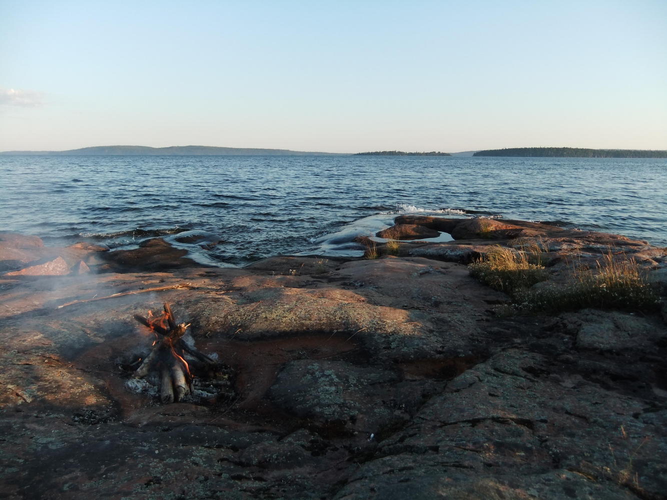 Tyler, a guy I was chatting to at Nipigon, suggested looking for a camping spot on Lakeshore Road, just outside Rossport. After spotting what must be the perfect wild camping spot, out of view of everybody on a piece of rock jutting out, with swimming and water clean enough to drink untreated, the rest of the day was decided, with a lazy Canada Day afternoon, lots of swimming, and a fire to finish the day off. Perfect.