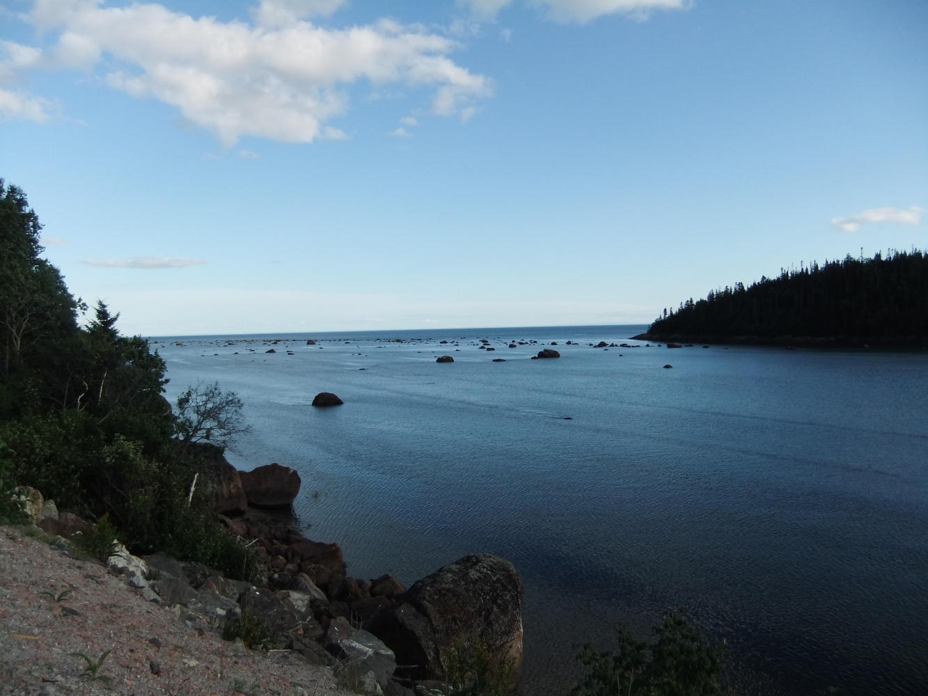 When I left Baie-Comeau and passed the turning for "The North", the roads became instantly quieter, with much less traffic, and no more of the big scarily overloaded trucks. The roads also became hillier, and by the time I reached Franquelin I was ready to find the campsite marked on the map I had bought from the tourist office. Unfortunately it hasn't been in operation for years and there was no sign of it, but some locals I chatted to at the Municipal spring directed me to a good camping spot by the beach as the Riviere Franquelin flows into the St Lawrence. It was only a very short walk to the Depanneur (convenience store) to buy a large, cold and much needed beer.