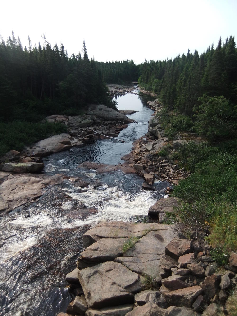 Unlike last Sunday I didn't see any yard sales or people chopping firewood today - probably as the population is so thinly spread out here, and what little there is is a way from the main (only) road. As you've probably guessed, I did see lots of motorcycles again today, although the biggest contrast of the day was the cyclists I saw. Between Port Cartier and Sept-Iles I saw, rode with and chatted to 2 road cyclists, who couldn't have been better company. As I approached Sept-Iles I saw a group of triathletes by the side of the road doing what looked to be a training session. The best I could manage from them was a reluctant "bonjour" before they turned their backs on me. Is this a problem with all triathletes?
